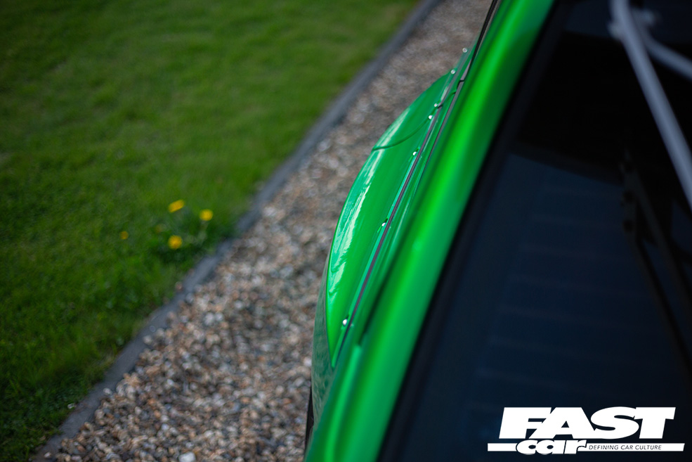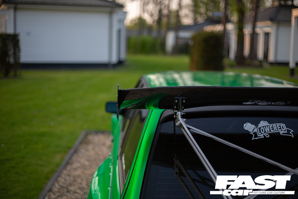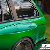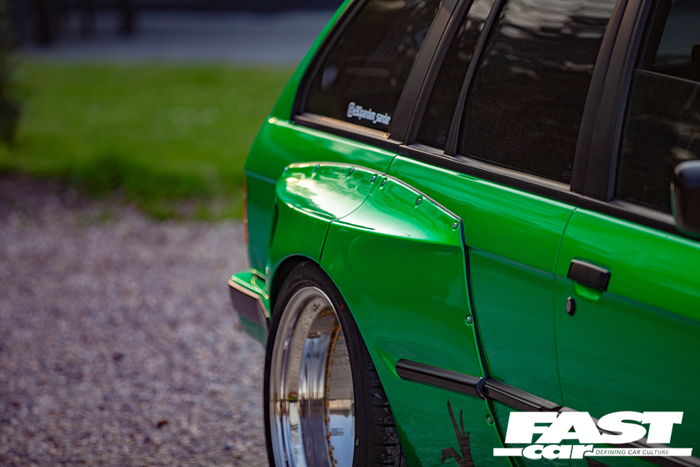 By this point it was approaching springtime and the car was crying out for some paint, or a wrap, or something. A lot of prep-work and fastidious finishing had taken place to perfect the bodywork, and Sander felt it was high time he paid a visit to WrapJunkies to transform his grey Touring into something more appropriate to the fresh lunacy of the reworked body. Et voila – now it’s ludicrously green.