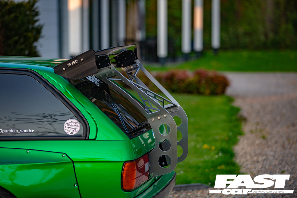 And so came the fitting of the bodykit. Something not for the faint of heart. “I procrastinated for days, because I knew that once you start grinding away at that metal there’s no way back,” he grins. But before long he couldn’t resist any more; Sander cracked out the power tools and got busy. After much trial-fitting, tweaking, metal trimming (not to mention helpful advice from his dad on sealing the bare metal so it wouldn’t rust under the new arches), he was eventually able to step back and gaze upon his magnificently loopy creation. Possibly the least sensible estate car the world has ever seen. The addition of the custom rear spoiler really adds to the lunacy; a unique setup by General Wheels, it was made-to-measure for the Touring and exudes a rich Touring Car vibe. Substantial-looking bit of kit, isn’t it?