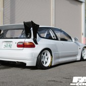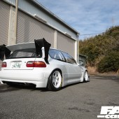 His Civic kit has been around for over a year now, we aren’t concerned on the freshness of it all, but rather on what the man behind Rocket Bunny – now Pandem – plans for the car. Back at Tokyo Auto Salon this past January, the idea was to build up the engine into something pretty crazy and take the car to Germany to compete in a Hillclimb race. The car is a fusion, an evolution of the little EF Civic that wore the TRA Kyoto colors 2 decades back, Miura’s Kanjo racer that for years he used to terrorize Osaka’s inner motorway loop with. The EF builds on that idea but brings it into a modern day take, it doesn’t forfeit the spirit behind it but presents it a more relevant interpretation.