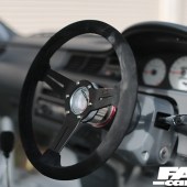 The contrasting FRP canards match what has also been added around the front bumper and the wheels, a set of white 16-inch TE37Vs, the perfect addition for a performance oriented build. The Toyo Tires R888R semis are the proverbial cherry on the top, especially with the yellow lettering along the sidewall.