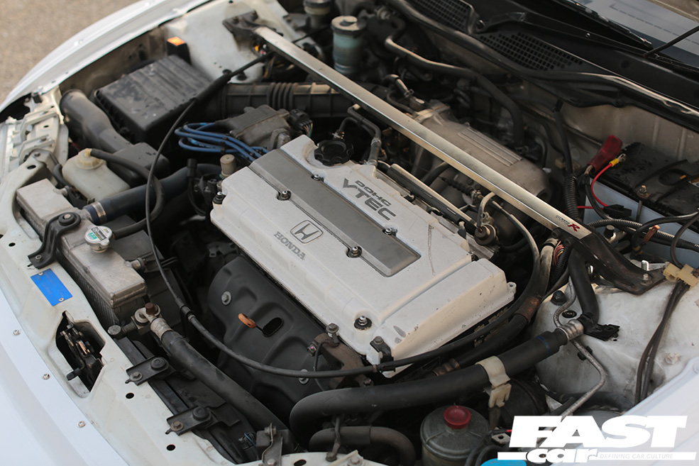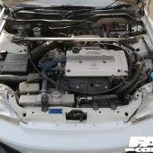 So what’s this car hiding in the engine department? The big GReddy front mount intercooler might hint at something pretty hearty but the truth is the stock B16A is still there, in its naturally aspirated form. There’s a Pandem exhaust system to aid in the sound side of things while a big radiator helps it stay cool in any driving condition but that’s pretty much it.