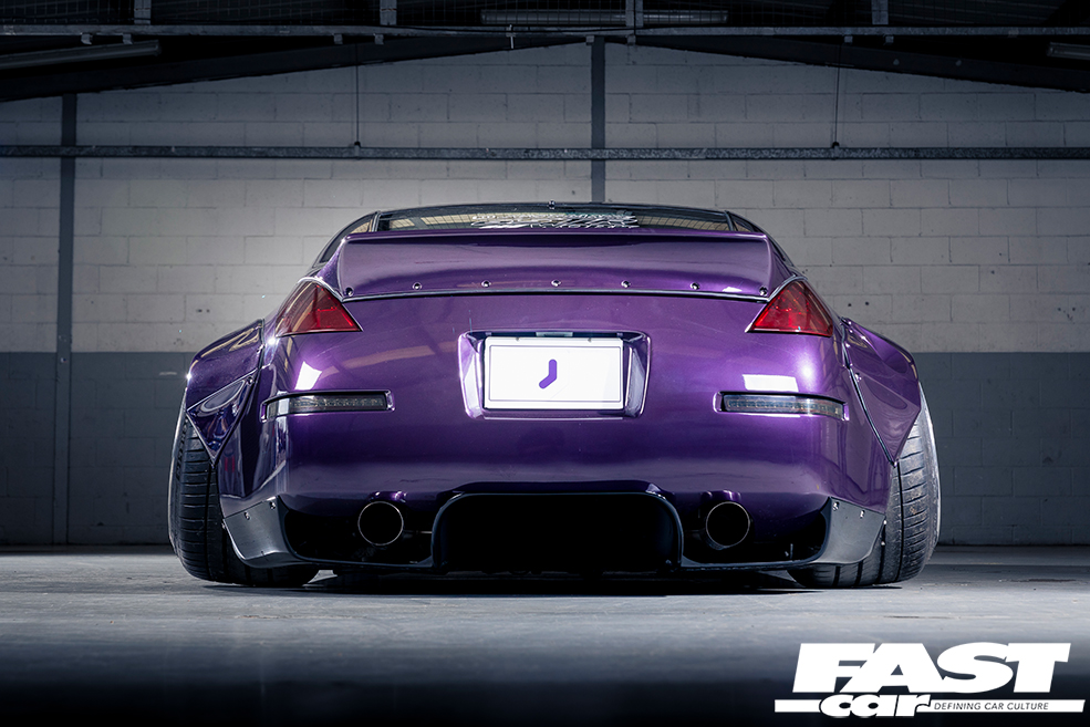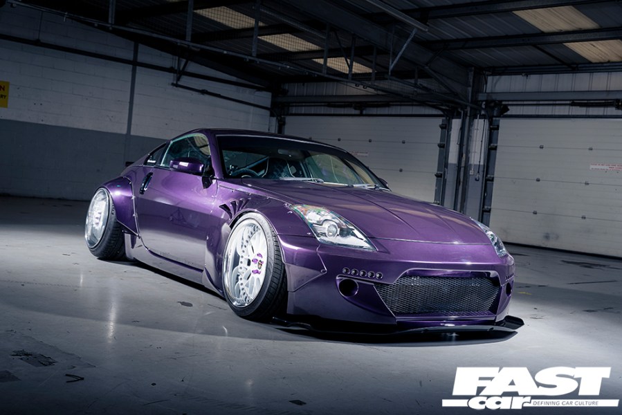 We’re always talking about how the modified car scene is a huge and friendly community, and the camaraderie at shows and on social media is a constant reminder of that. And when this scene crosses over with another that’s equally broad and inclusive, some truly magical things can happen. Just ask Jamie (aka ‘JustJamie’), owner of this wide-hipped Merlin Purple Pandem Nissan 350Z: “My job consists of playing games online for people to watch,” he explains, “and one day we were talking about modified cars and my viewers asked what car I would like. My dream was always an S15, but the prices were rising too fast so I said a 350Z would be amazing – the body shape is really clean. They told me to put up a goal for one (which is where viewers will donate money) for £6,000. Within 9 days the goal was reached, and I then live-streamed me purchasing the 350Z on the 10th day. Pretty crazy story to be honest!”