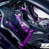 Limited edition (1/200) Rocket Bunny Racing steering wheel, Braum Elite seats, purple harnesses, custom boot build