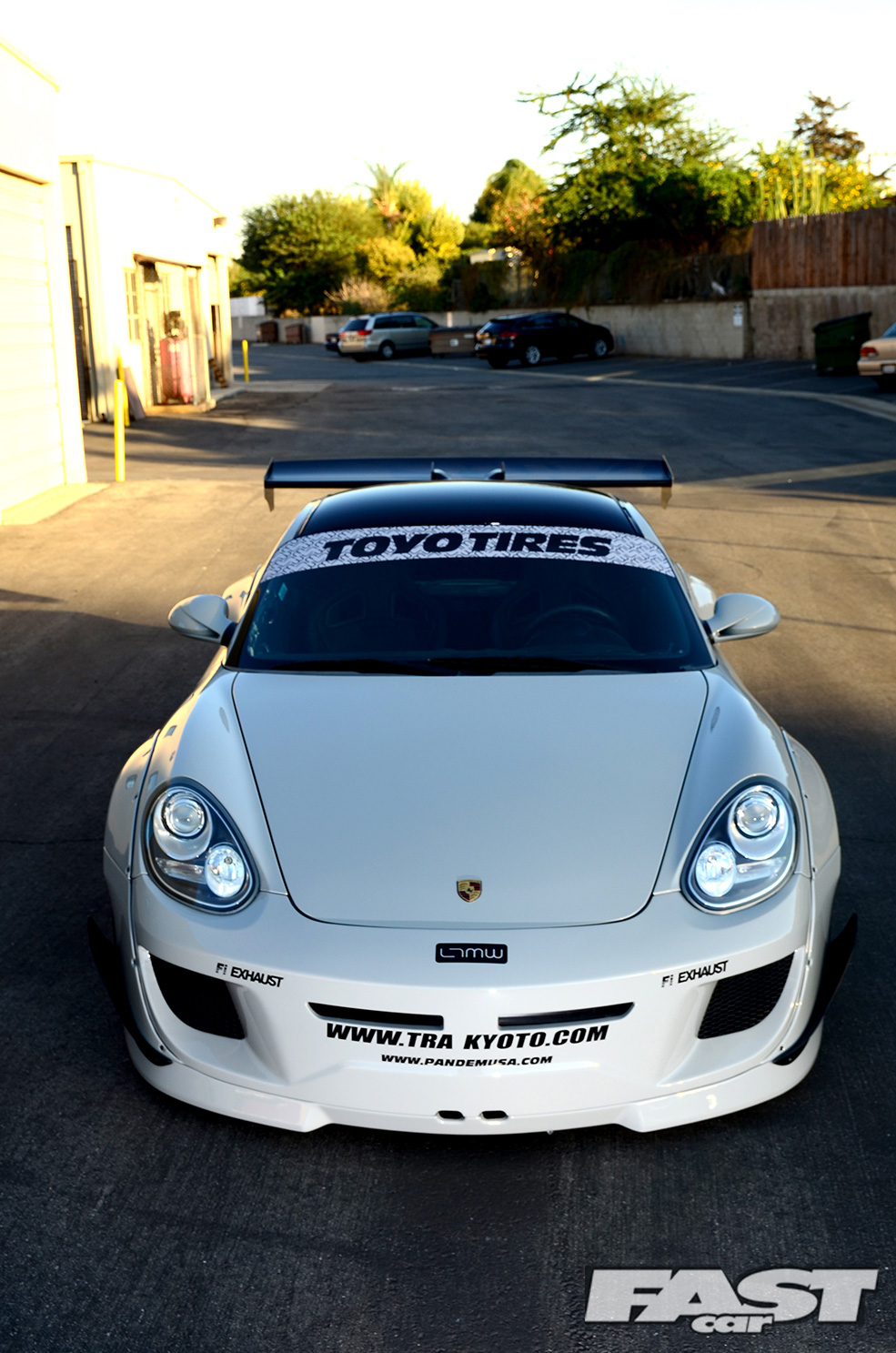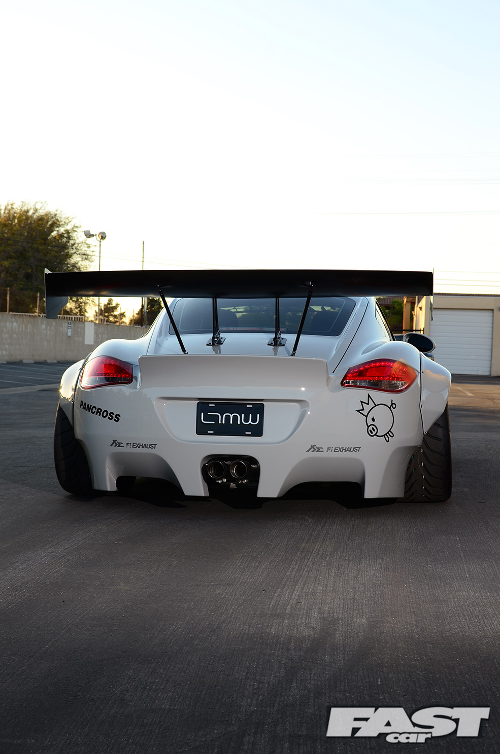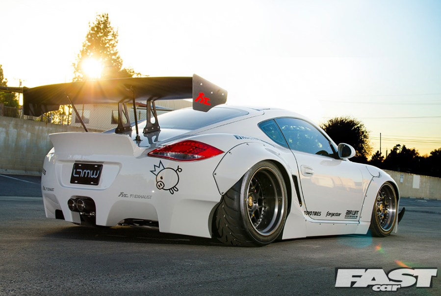 On paper, the Cayman is the smallest car in the Porsche range – but there’s nothing small about this modified Pandem Porsche Cayman. Just look how damn wide it is!