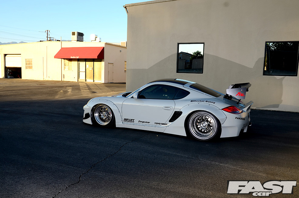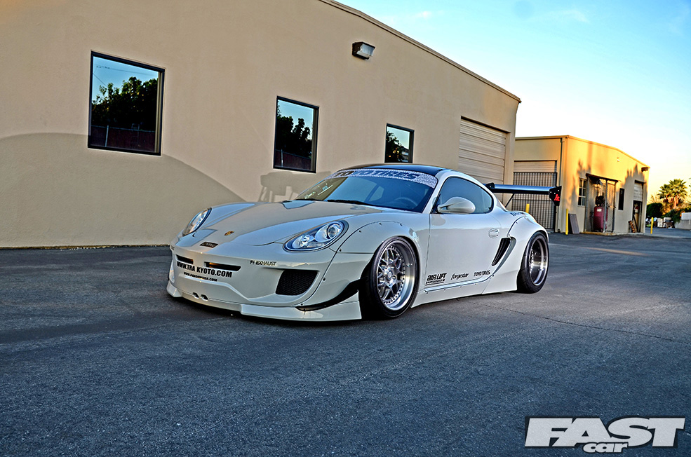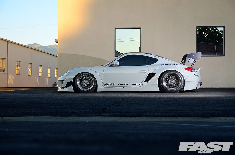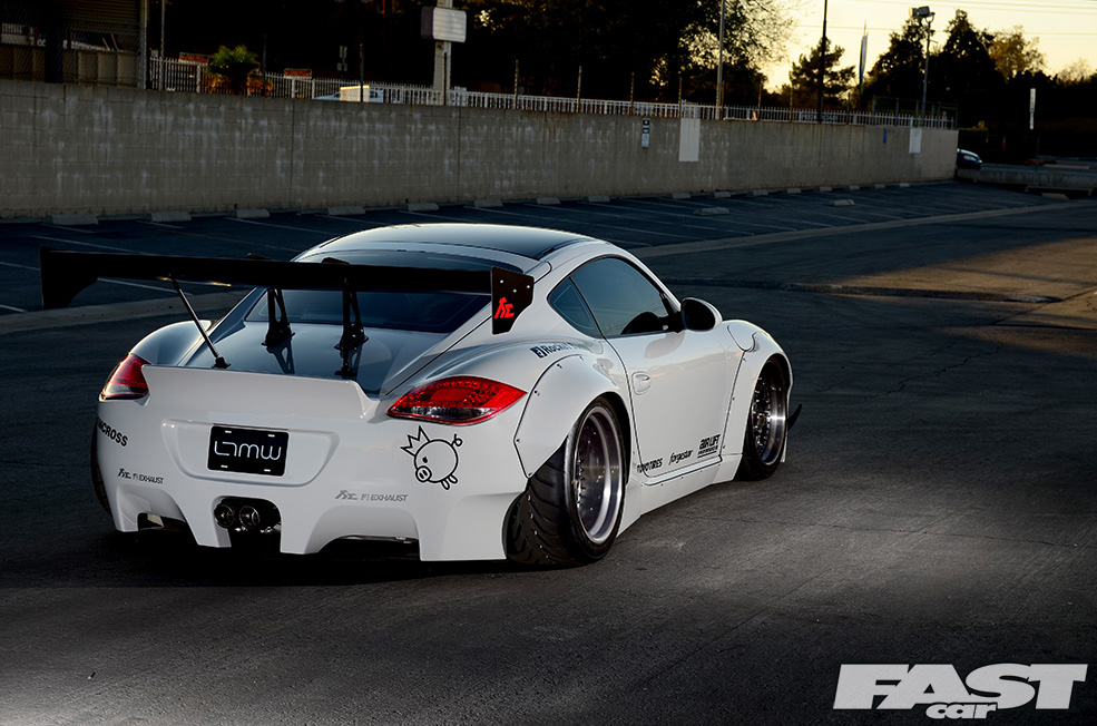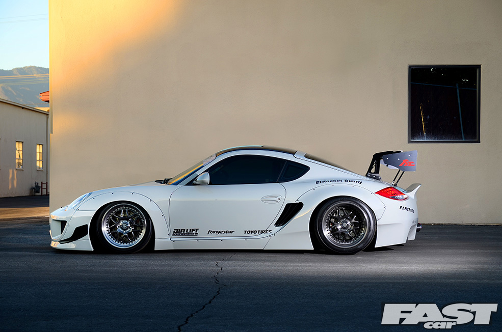 On paper, the Cayman is the smallest car in the Porsche range – but there’s nothing small about this modified Pandem Porsche Cayman. Just look how damn wide it is!