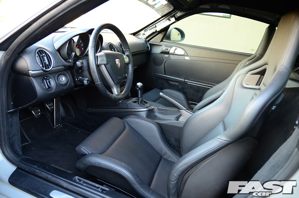 The Cayman itself is an interesting proposition for a build. There are a lot of people out there who sideline it, calling it a ‘poor man’s Porsche’ simply because it isn’t a 911. These people are idiots who can safely be ignored. The truth of the matter is that it’s an entirely different kind of Porsche; while the bigger-brother 911 has been belligerently clinging on to the notion that hanging the entire engine way out behind the rear axle is a good idea since the 1960s (with, it has to be said, a surprising degree of success), the Cayman and its roofless Boxster sibling reframe the experience within modern parameters: the engine’s in the middle of the car, which arguably makes far more sense and makes the thing more balanced, and the car is also usefully smaller. Smaller means lighter.