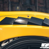 Rocket Bunny / Pandem V3 wide-body kit inc. ducktail, GT wing, front, side and rear canards, splitter, rear diffuser and grilles, three-stage Lamborghini New Giallo Orion paint (with two coats of pearl), moulded front arch vents, roof and front arch vents finished in peelable P1 black paint, P1 self-healing clearcoat protection, smoked Valenti taillights, Vland sequential headlights, 5500k HID kit, chaser underglow neons