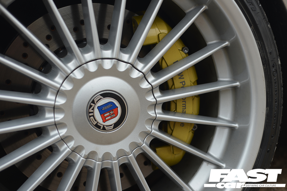 8.5×18” (front) and 9.5×18” (rear) Alpina Classic wheels with 215/35 (front) and 245/30 (rear) Falken Azenis tyres, HSD coilovers, F10 brake master cylinder, BMW M Performance E90 six-pot calipers and E46 M3 CSL discs (front), Porsche 996 911 calipers and E46 M3 CSL discs (rear) EXTERIOR Front lip, E87 1 Series door mirrors, LCI LED rear lights, CSL-style boot lid.