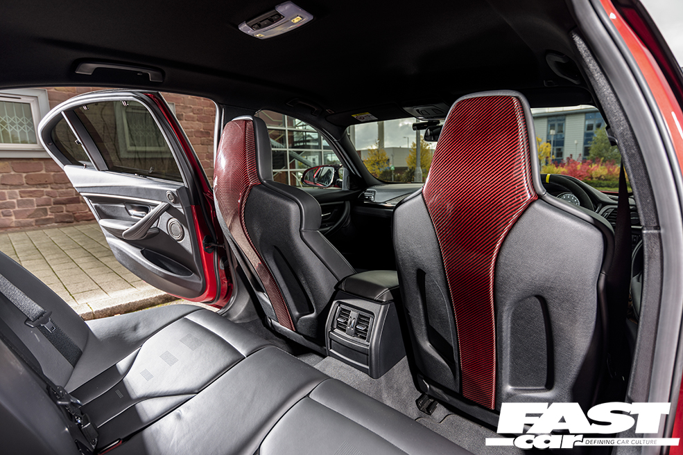 The wheels might not be carbon but, considering how much carbon Anand has added to his car, it surely can’t be coincidence that the hue he’s chosen his Vorsteiner V-FF102s in is called Carbon Graphite? “Vorsteiner had been a brand I had always loved before I even had the car and I wanted a very motorsport-style wheel” he says. “I didn’t want the weight of regular cast wheels and I couldn’t at the time justify the price for forged wheels. Vorsteiner offers a middle ground with its Flow-Formed wheels, which is where I fell in love with the VFF102.” The finish on the 20s is stunning and the slim ten-spoke design really suits the M3’s shape and absolutely achieves that motorsport look that Anand was aiming for. The ride height, too, is pretty much perfection, and once again looking at this M3 makes you realise just how high the standard car sits, though achieving just the right amount of drop took a little bit of work. “I first started with H&R Sports Springs,” Anand explains, “however these turned out to be too bouncy and simply too low to be practical. In addition to this, once I’d purchased my new wheels, I would experience some slight rubbing on the rear and I wanted to avoid this, so I changed to the KW Height Adjustable Spring Kit. This allowed me to dial-in the exact height I needed for the car to make sure I wasn’t catching on every speed bump I came across. It is a still difficult from time to time, but it is now much more manageable,” he says and what are lows without a little bit of sacrifice? Of course the best thing about the KW kit is that only does Anand have the flexibility of being able to tweak his ride height should he choose, it also allows him to retain the M3’s adjustable damping.