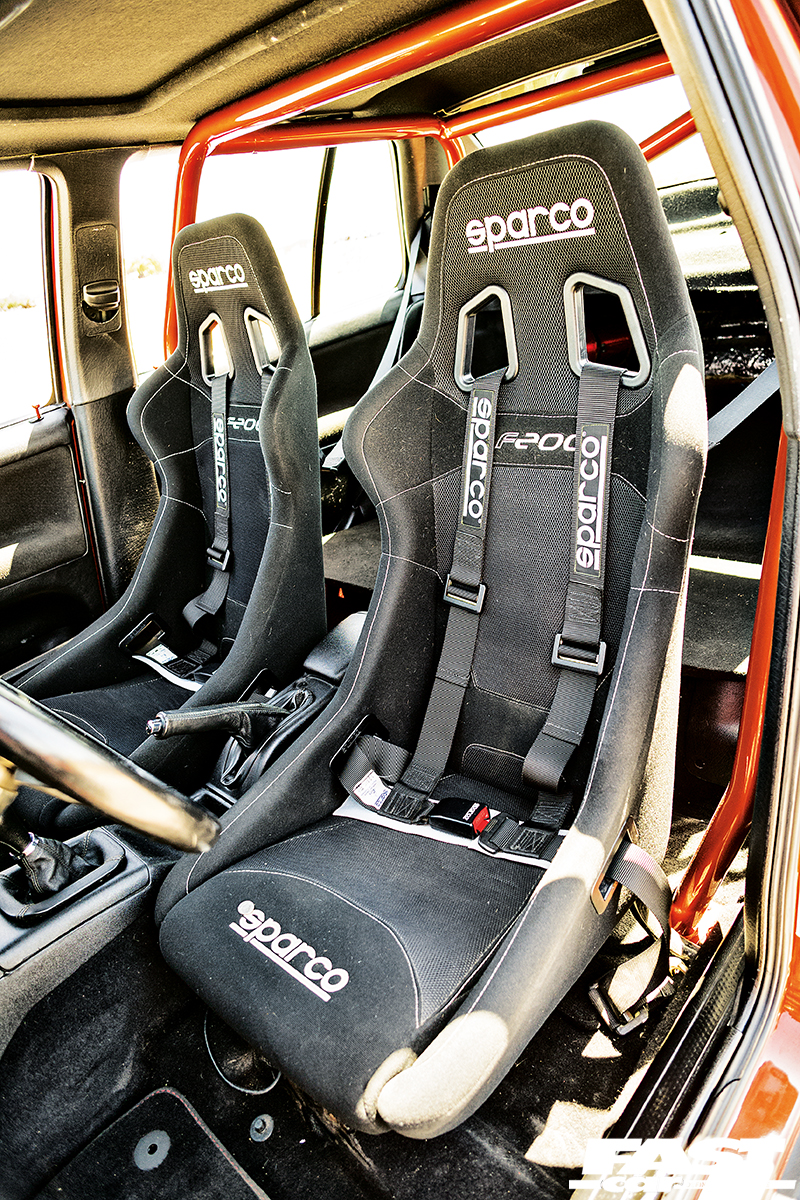 The rest of the car’s mechanicals have been attended to with just the same standards as what’s going on under the hood. CX Racing coilovers keep the tyres tight in the arches and Neuspeed front and rear anti-roll bars and a full compliment of polyurethane bushes help keep things in check. The cage is another thing Mike fabricated himself. “I wanted it to be fully functional yet allow for headroom and it had to follow the lines just right, too, so it took a lot of work,” he explained.
