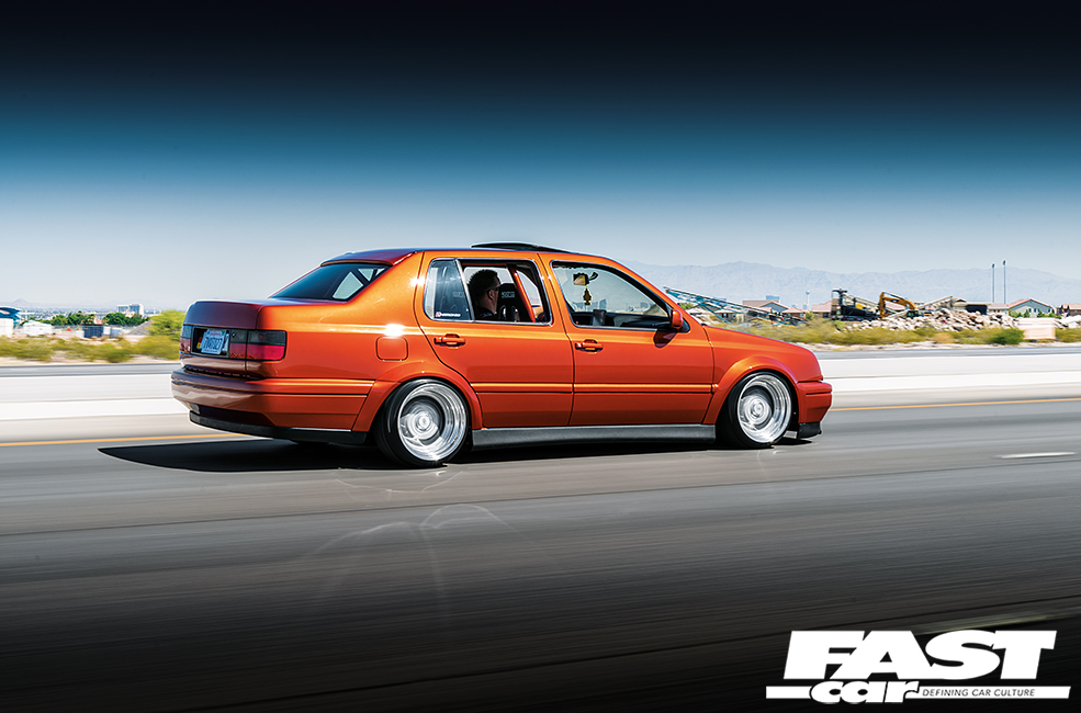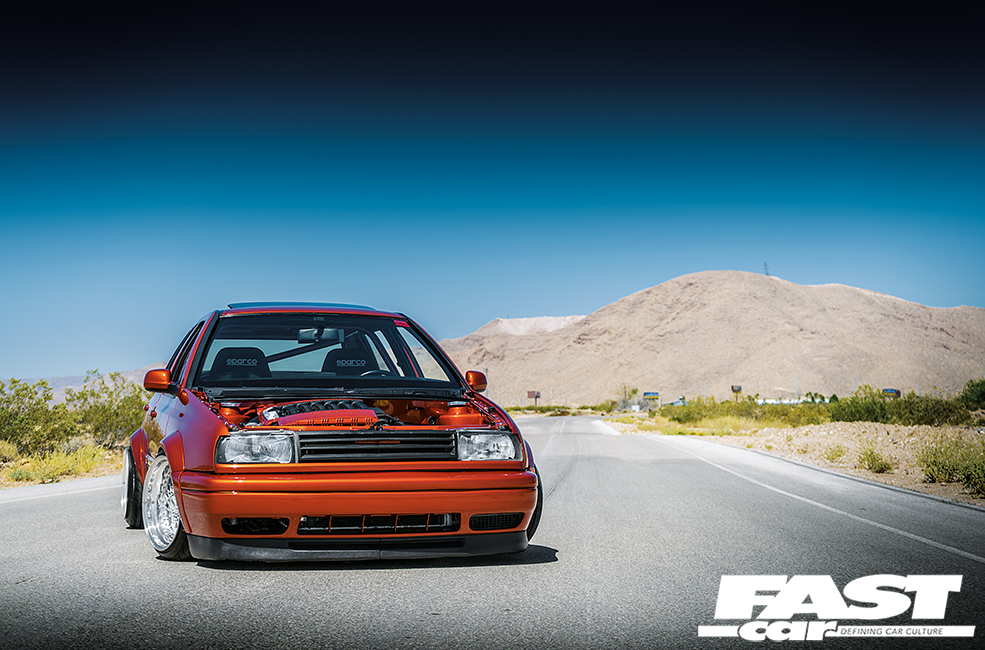 Mike Pitman says he likes to build his cars fast, and he likes to build ‘em custom, too. His VW Jetta here is the latest in a long line of out-the-box builds that has earned the title of a Pitman car.