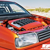 3.6-litre FSI engine from a Touareg. Porsche Cayenne intake manifold, 120 Shot of Nitrous set up, United Motor Sports tune, custom under-drive pulley, Billet power steering pulley and custom intake tube to space out the throttle body. 02A gearbox with TDI fifth gear and Katz differential, Clutchmaster Stage 2 clutch with 9lb flywheel, Mishimoto radiator, BeCool fans, Neuspeed short shifter, 2.5” exhaust with Borla manifold