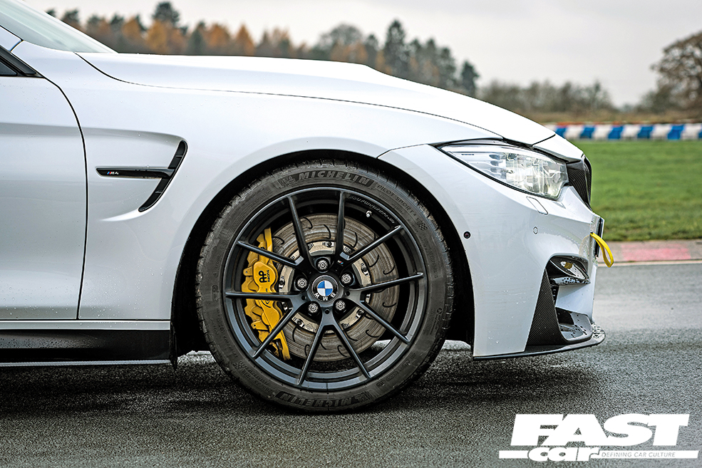 9×19” ET29 (front) and 10×20” ET40 (rear) BMW 763M wheels with 265/35 (front) and 285/30 (rear) Michelin Pilot Sport 4 S tyres, Öhlins Road & Track coilovers, AP Racing Pro 5000 R BBK with DS3000 pads (front)