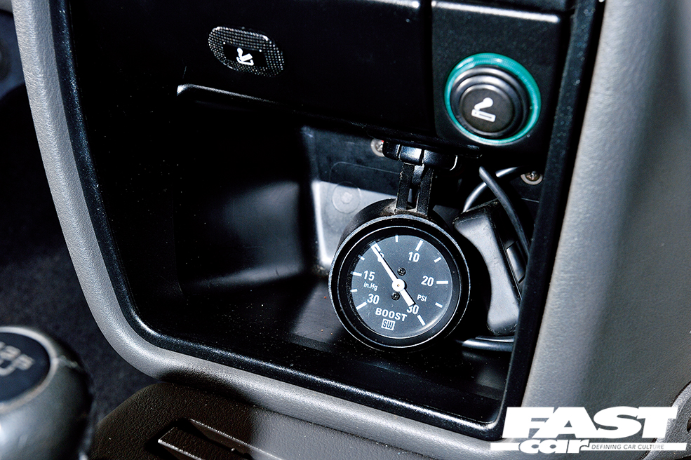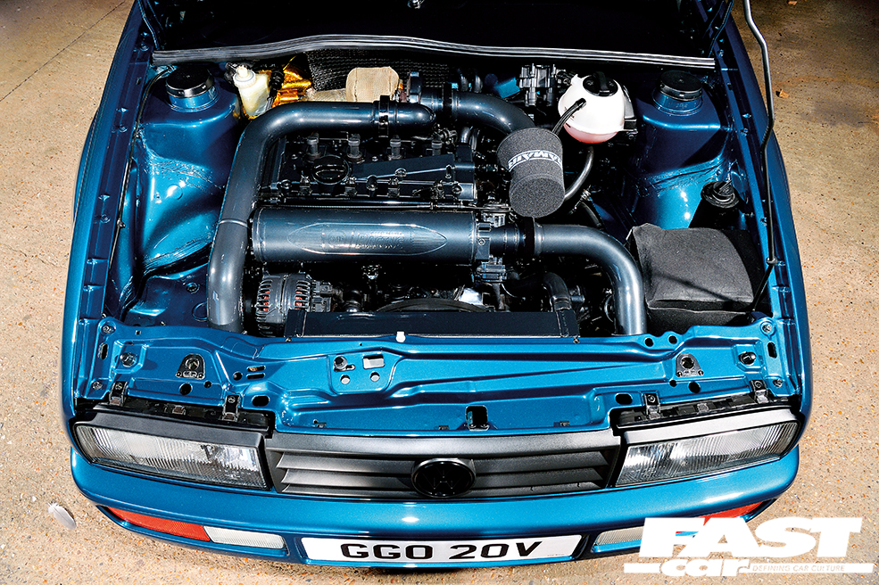 The engine spec is, frankly, fantastic. With a Garrett GT2871R turbo, bolted to a custom-made equal length manifold, it was clear from the outset that he wasn’t messing about. 550cc injectors ensure the engine has enough gogo juice, and the Jetex 2.5” exhaust with custom downpipes make sure the gases can escape properly. Tial provided some of their world class equipment, in the form of a 38mm external waste gate and a 50mm blow off valve. With more than a few bespoke parts made for the build, including the turbo cold side housing, fully V-banded boost run and a one off radiator, Scott made sure that no stone was left unturned for this stage of the build. Final figures are a dyno proven 302.8whp and 280lb/ft or torque. Not bad at all, especially with such a smooth delivery. To ensure the power could be put down properly, heavy duty G60 shafts were mated to VW’s renowned 02A gearbox, with a super-strong Sachs VR6 clutch doing the honours.