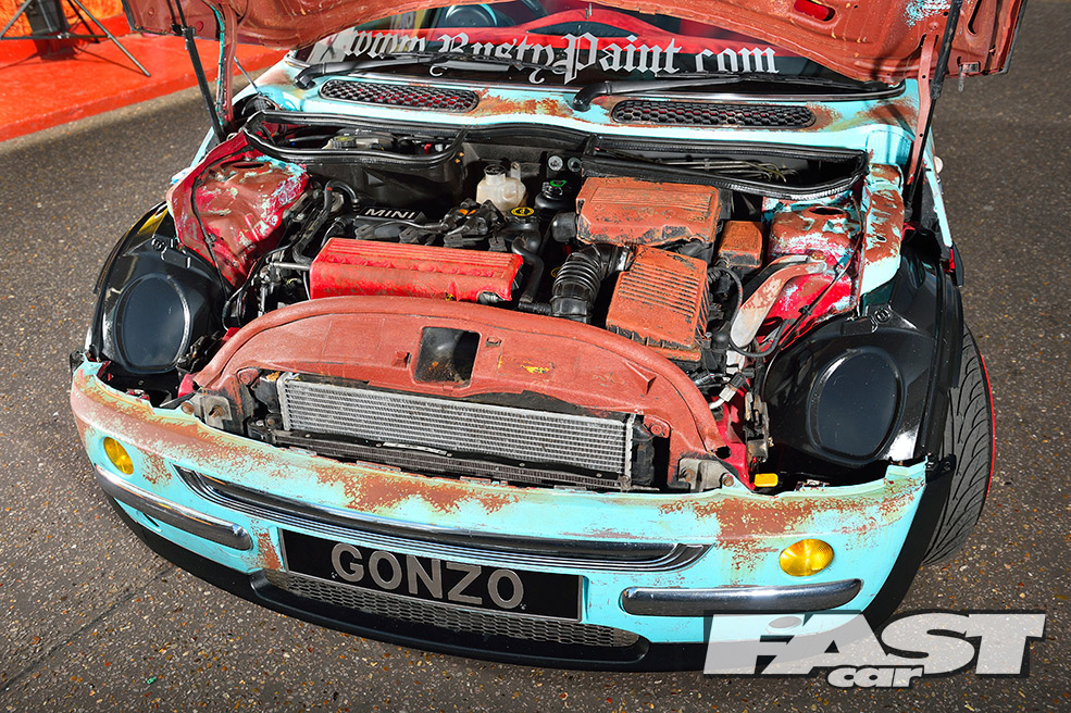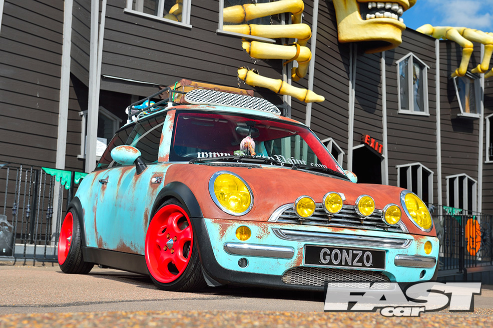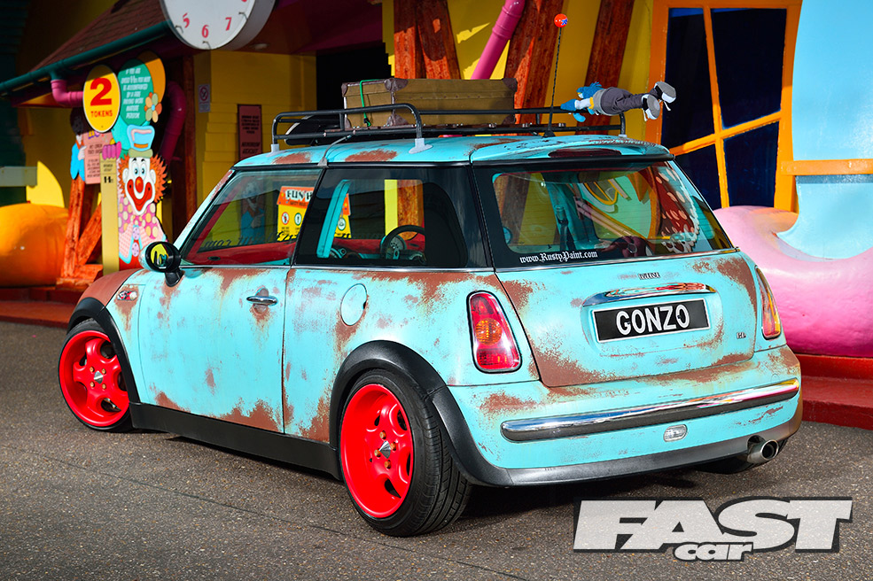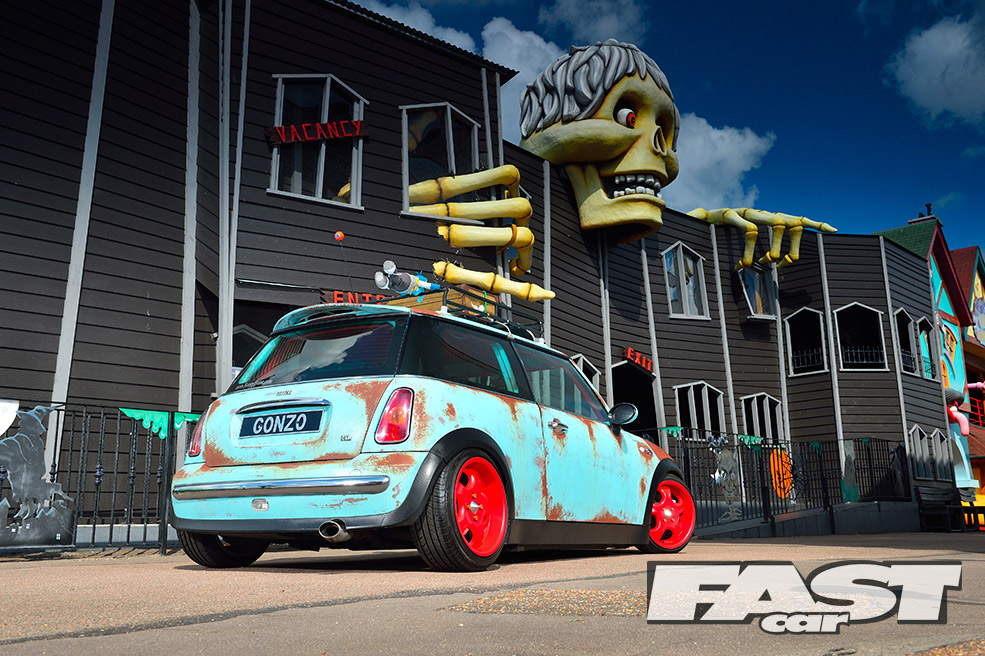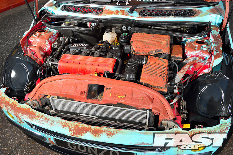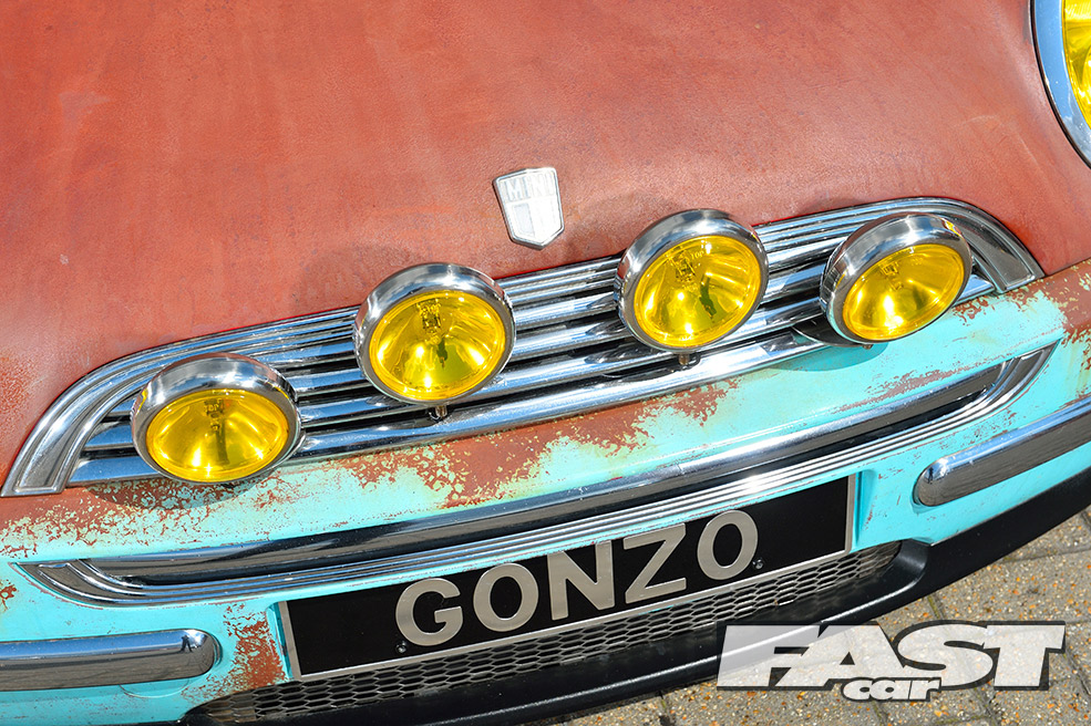A car like this is obviously more about the style than performance, so the 1.6–litre Cooper engine remains stock, albeit with a K&N air filter, a straight-through exhaust and obligatory rusty paint on the plastics. The gearing is quite low in an early Cooper, however, so 115bhp does the job. It also gives old Gonzo a better chance of hanging on up there!