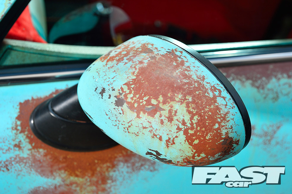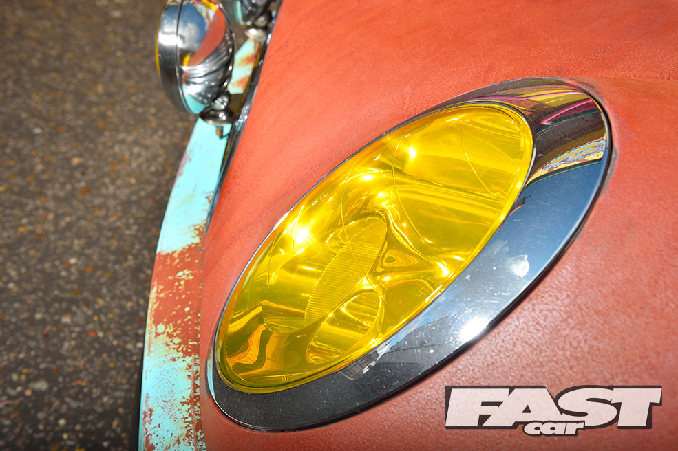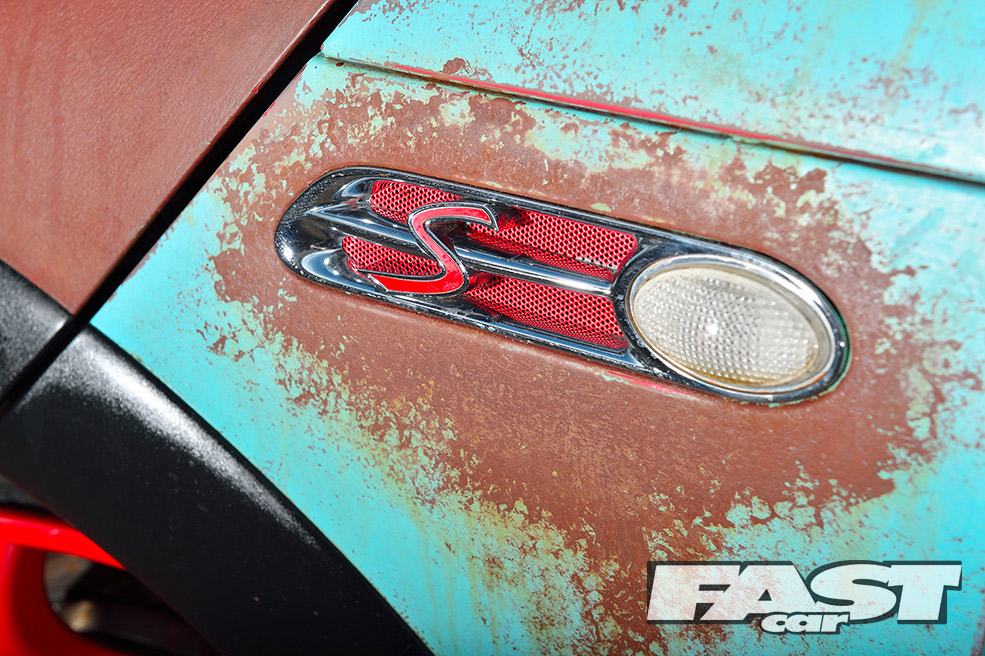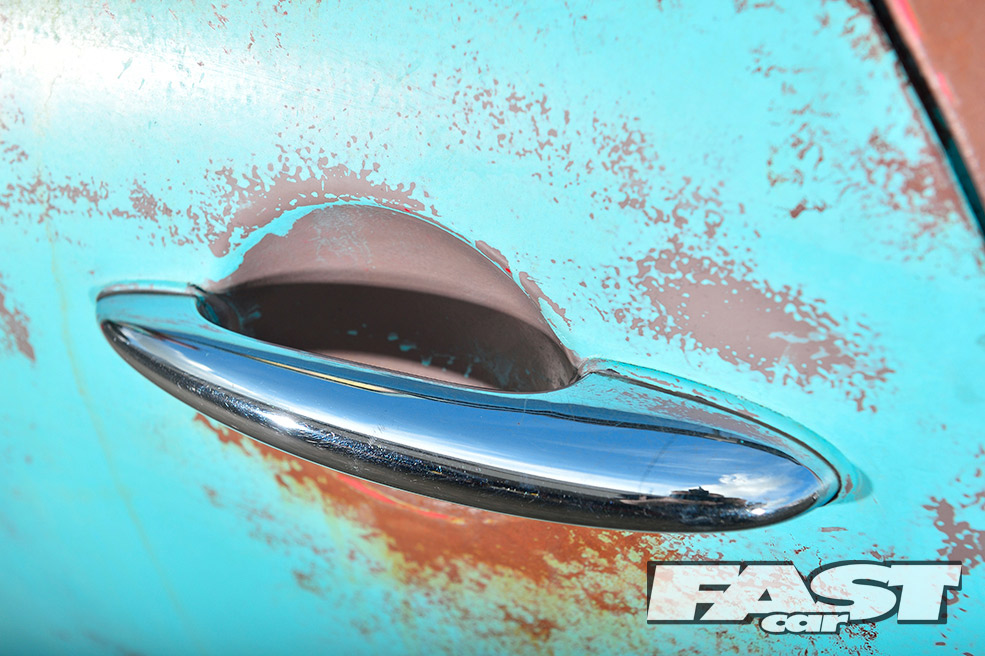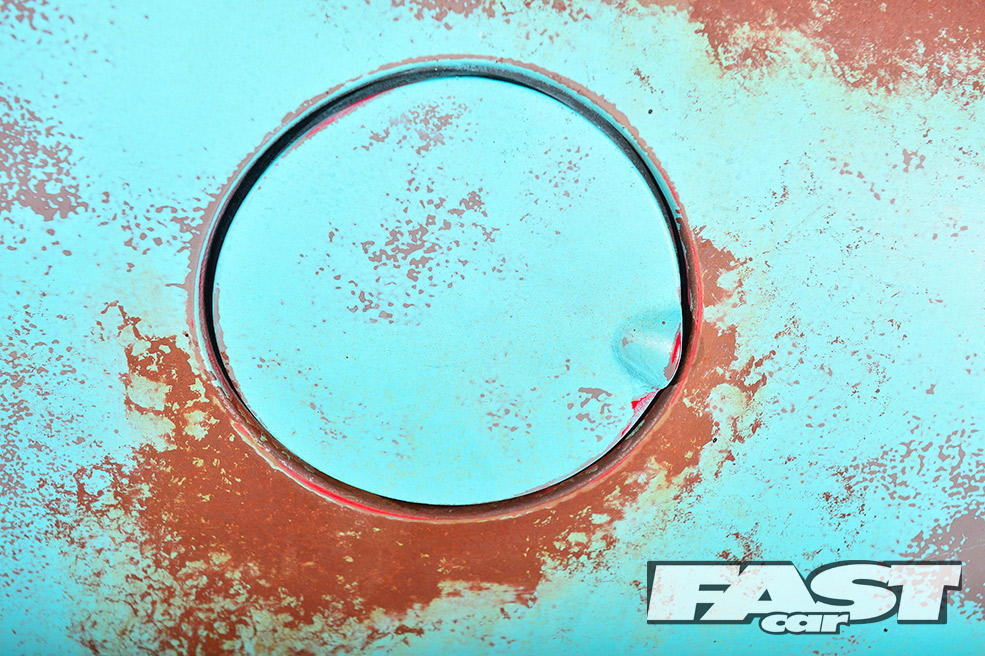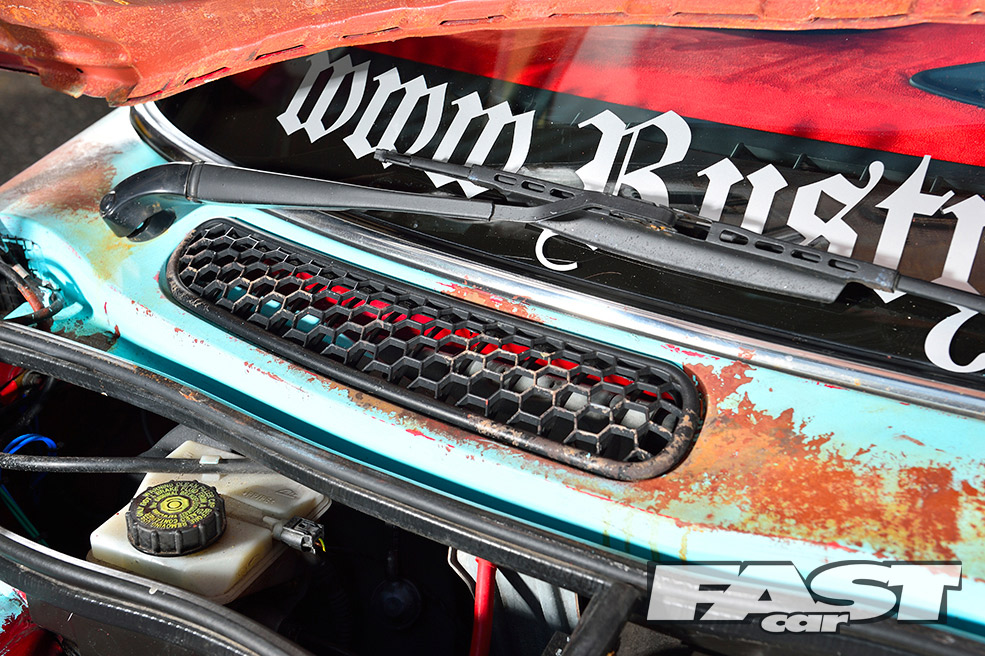 Unfortunately, running the car so low soon led to a nasty coming together between the radiator, sump, clutch housing and a country road. The heavy damage could have easily put a downer on the whole project. But for Karl, it presented a good opportunity to finally get stuck into the theming, as much of the front end needed to come off for the repairs. “I decided to paint the whole car brown to begin with, before layering on some teal colour over the top,” he explains.