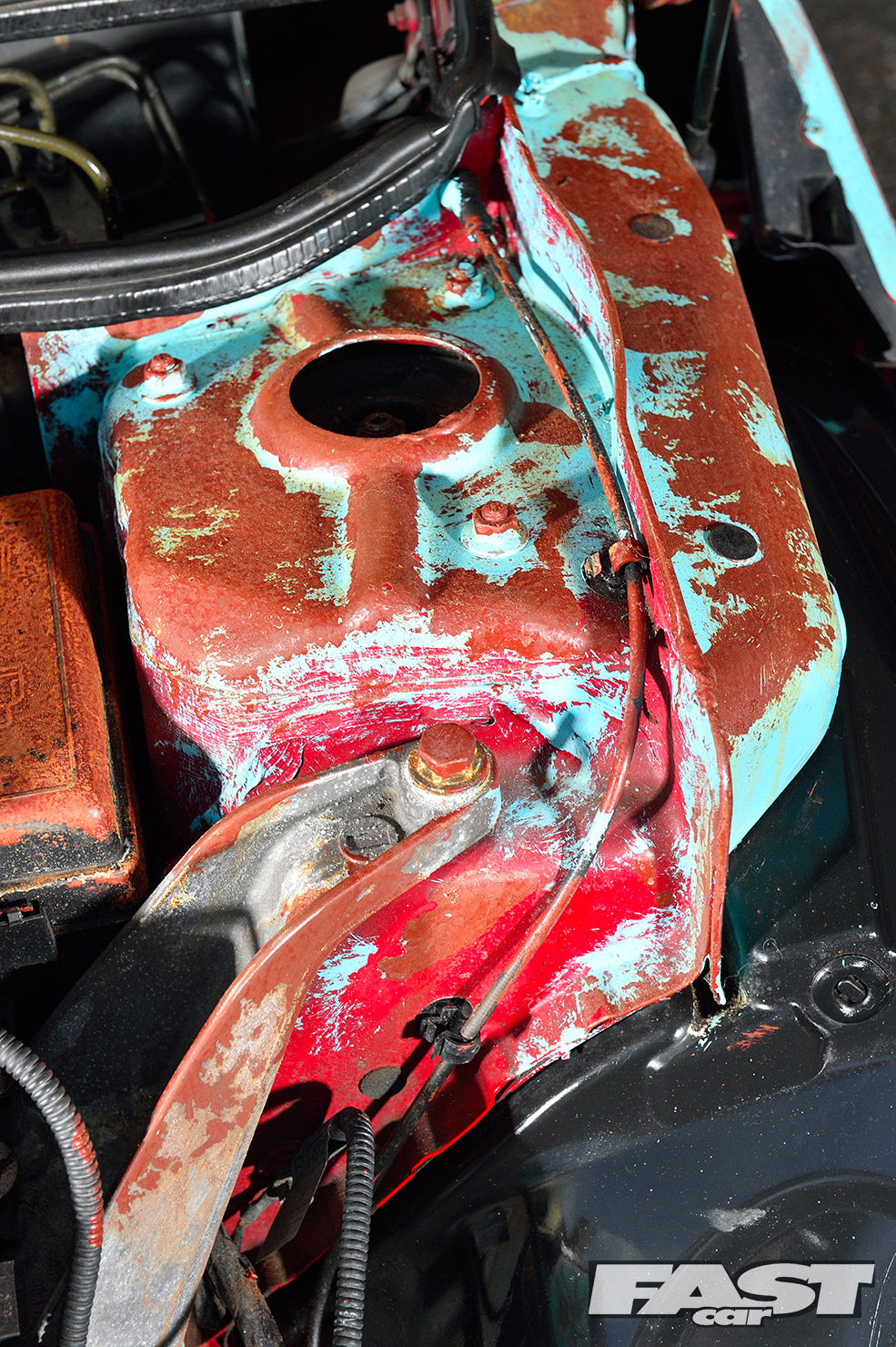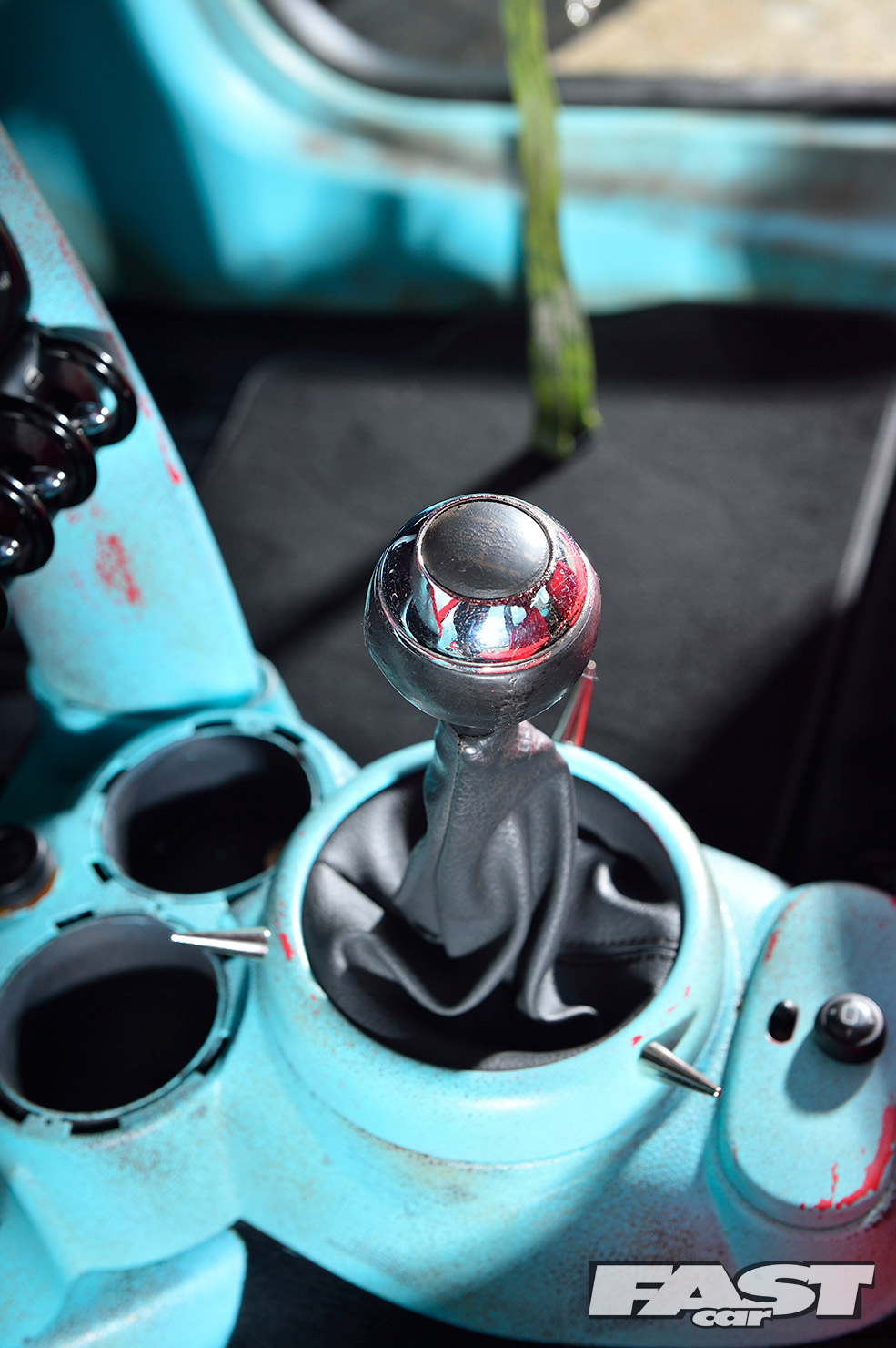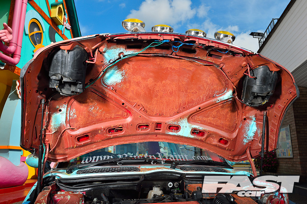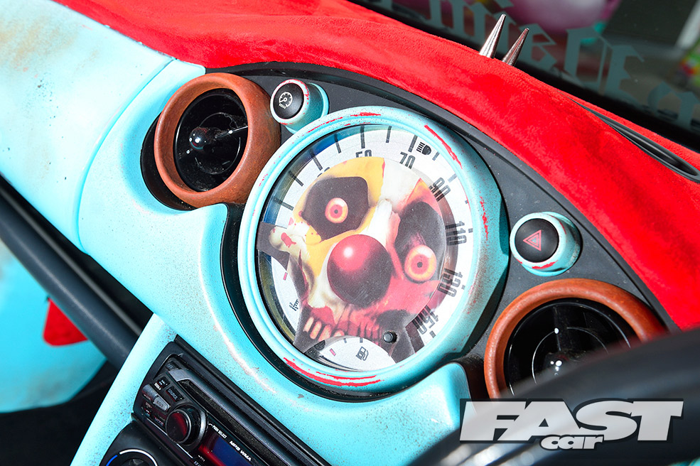 Unfortunately, running the car so low soon led to a nasty coming together between the radiator, sump, clutch housing and a country road. The heavy damage could have easily put a downer on the whole project. But for Karl, it presented a good opportunity to finally get stuck into the theming, as much of the front end needed to come off for the repairs. “I decided to paint the whole car brown to begin with, before layering on some teal colour over the top,” he explains.