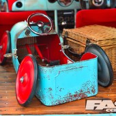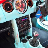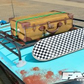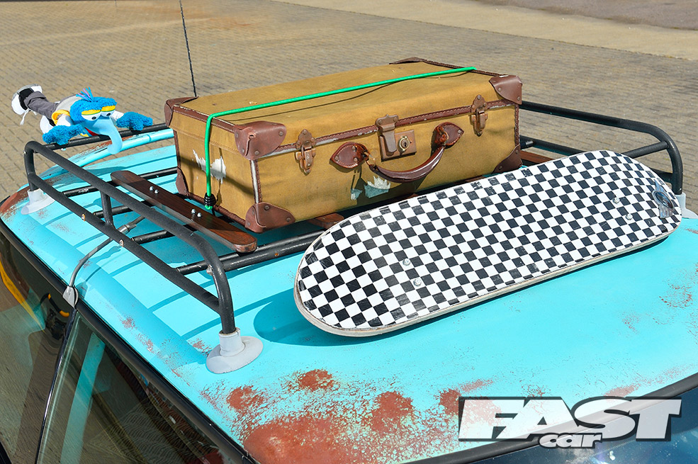 After that arrived a classic 1960s roof rack and the cheesy Union Jack roof and mirror graphics were swapped in favour of matching chequer vinyls. “I sprayed the wheels in plastic-look paint, which still fools a few people,” adds Karl. “To make them look even more different, there are custom centre caps and the wheel nuts have some empty cartridge case covers that I’ve left to go rusty.”