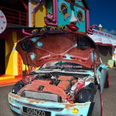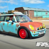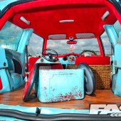 Since we met up with Karl and these pictures were taken, he has gone one step further with his van conversion and vinyl’d the rear windows up. The ratty MINI proved a real success at the shows in 2015, but it’s now gone to a new owner, so we’re looking forward to Karl’s next move. Expect something equally as mad as this…