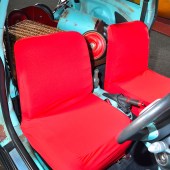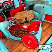 Rear seats removed; bespoke wooden suspended floor; classic Mini front seats; dash/pillars/ roof lining/door cards recovered in red suede; all plastics painted; custom pedal car in boot; Kenwood headunit.