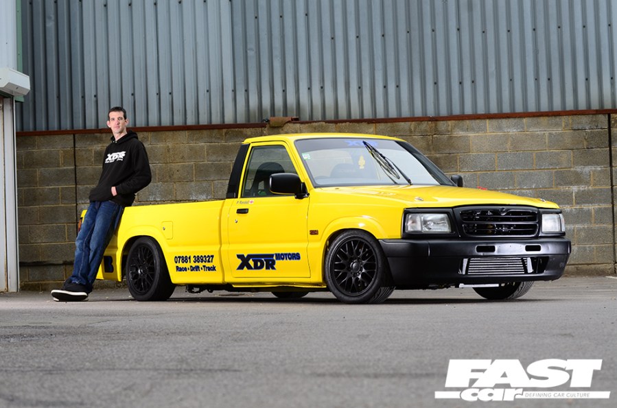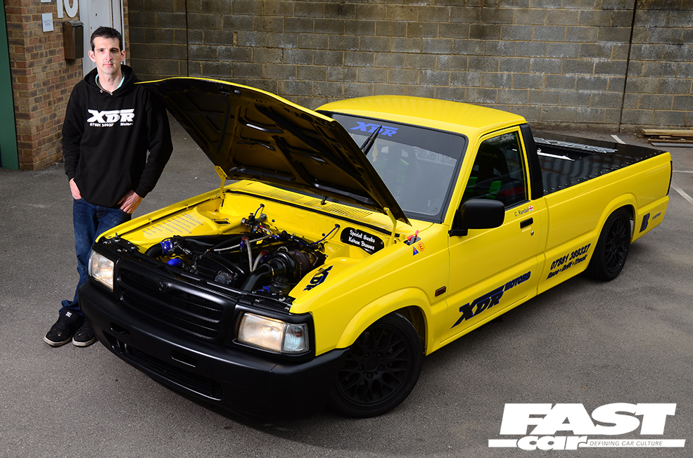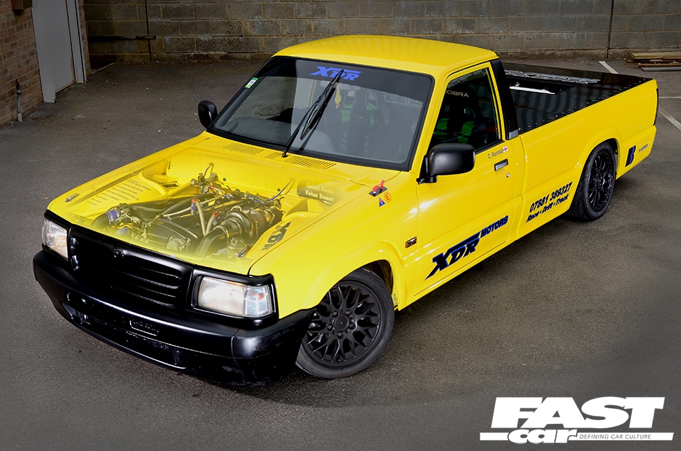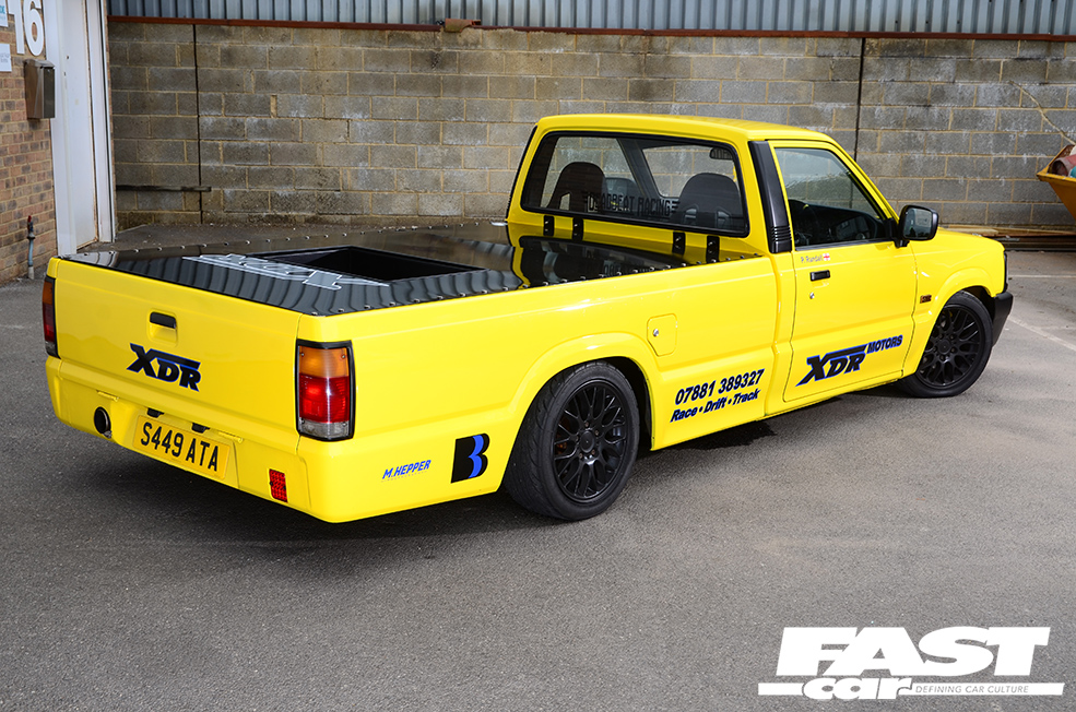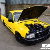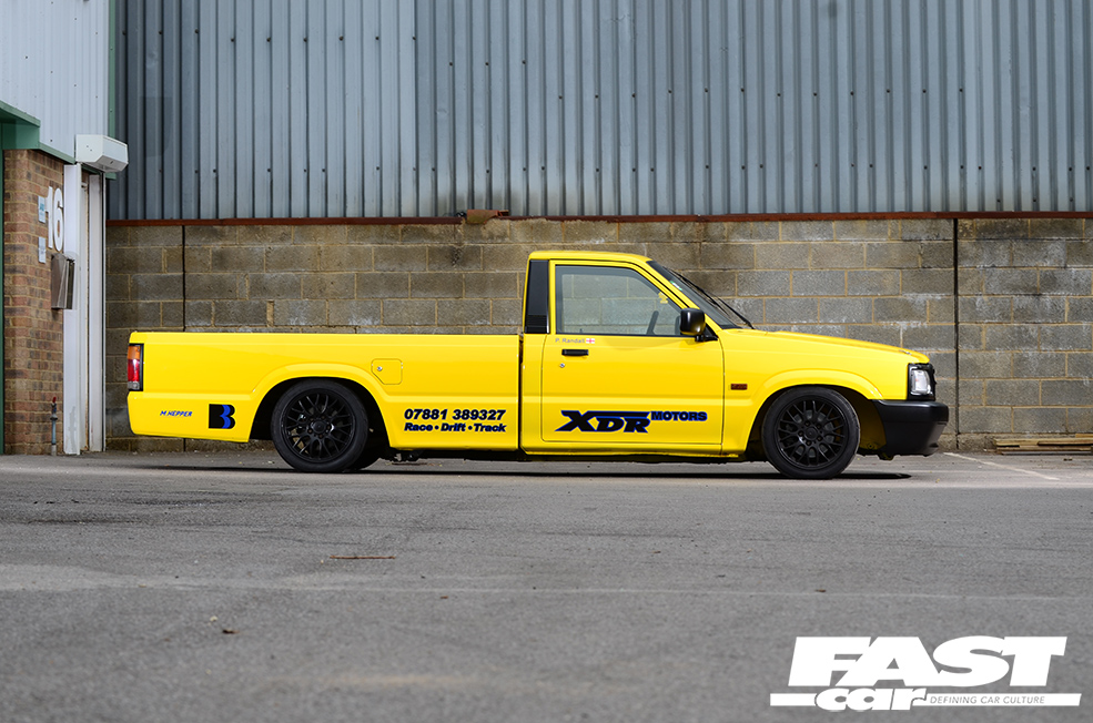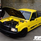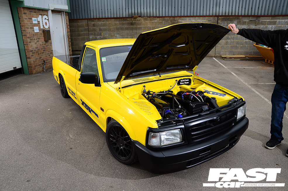 Dabbling with racy machines all day, it’s inevitable that Phil’s own projects would be pretty tasty, and his personal CV following the 205 includes a drift-spec RX-7, a DC5 Integra, a full custom supercharged Honda Accord Type R, and… this Mazda B2500 pickup truck. Yep, bit of a random addition to the line-up, isn’t it?