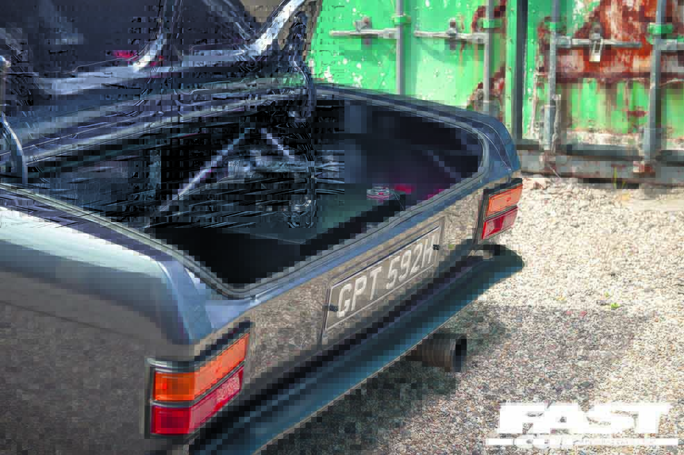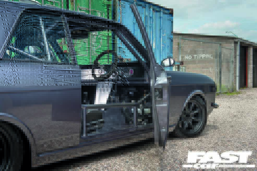 At first, the car was stripped down and blasted to see what Jamie was working with. It turned out to be quite solid, but needed the usual rear quarter, sills and front wing repairs. After the bodywork was completed, attention was turned to mounting the engine and gearbox and at the heart of the build was the plan was to go for a YB turbo, as big horsepower was a must. Although Jamie admits the idea of fitting a small V8 did also cross his mind! This particular YB engine was built by Cosworth tuning guru, Harvey Gibbs and features a long-studded 200 block, a standard head and a T34 turbo, producing a wholesome 389 bhp and 400 lb/ft of torque.