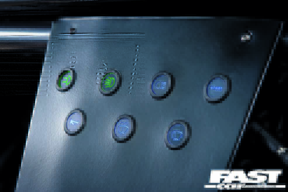 BMW M3 Vader seats, TRS four-point harnesses Stack ST700 display and speedo, Stack Pro gauges, custom dash panel, flocked dash top, alloy centre panel with CBS billet switches, alloy door cards, rear panels and firewall.