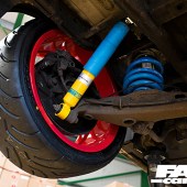 Bilstein B14 coilovers, Team Dynamics Pro Race 1.2 wheels, Dunlop Direzza DZ03 Tyres, OEM discs and pads