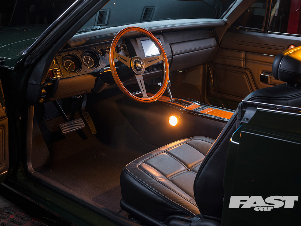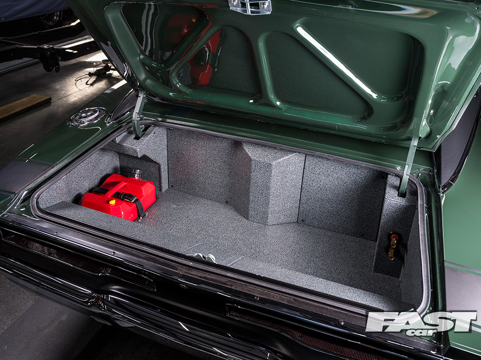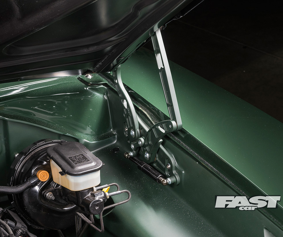 The Rings have one very strong opinion when it comes to paint: “The owners are always involved in the color,” said Jim. “Mike tells them early on that the car will tell them what color it wants to be. Color is a scary thing. It’ll make or break a car, there’s no doubt about it.” Erlend loves black paint, but felt that it wasn’t the right choice for this car. The co-designer, Gary Ragle, provided Erlend with renderings with different hues, and green was the color the car wanted to be. The BASF Glasurit shade is called “Greener On The Other Side” and is the same as a favorite car of Erlend’s: a 1973 Pontiac Trans-Am built by Detroit Speed in 2011.