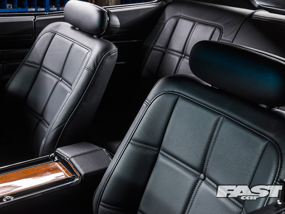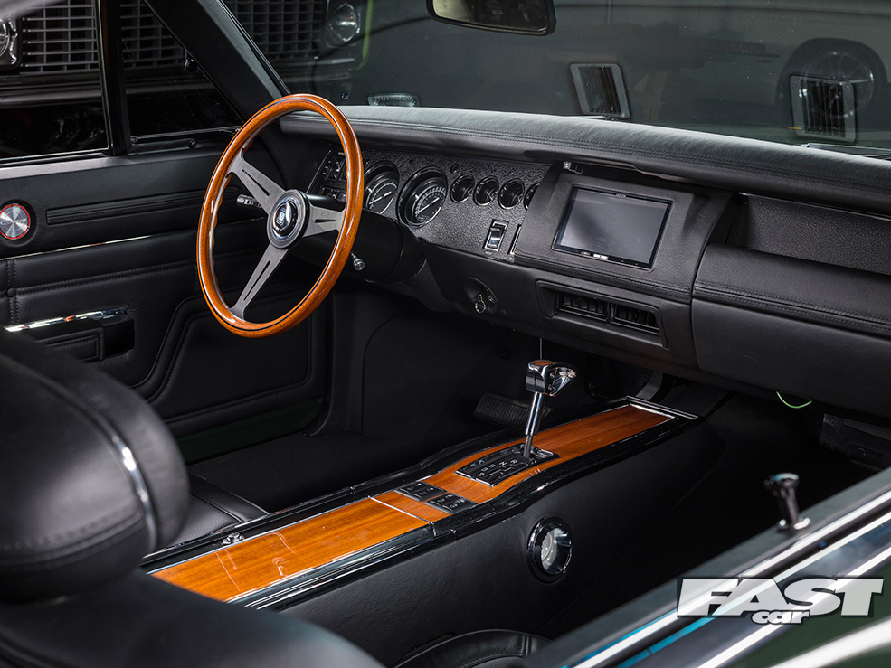 The Charger’s update to modern muscle took the Rings about 4,700 hours. “So many parts had to be modified,” explained Jim. “Even the interior looks stock, but there is not one stock part on the car—from the seats out of a Toyota Camry to the back seat made from scratch, the stitching and the style of stitch—but it looks factory.”