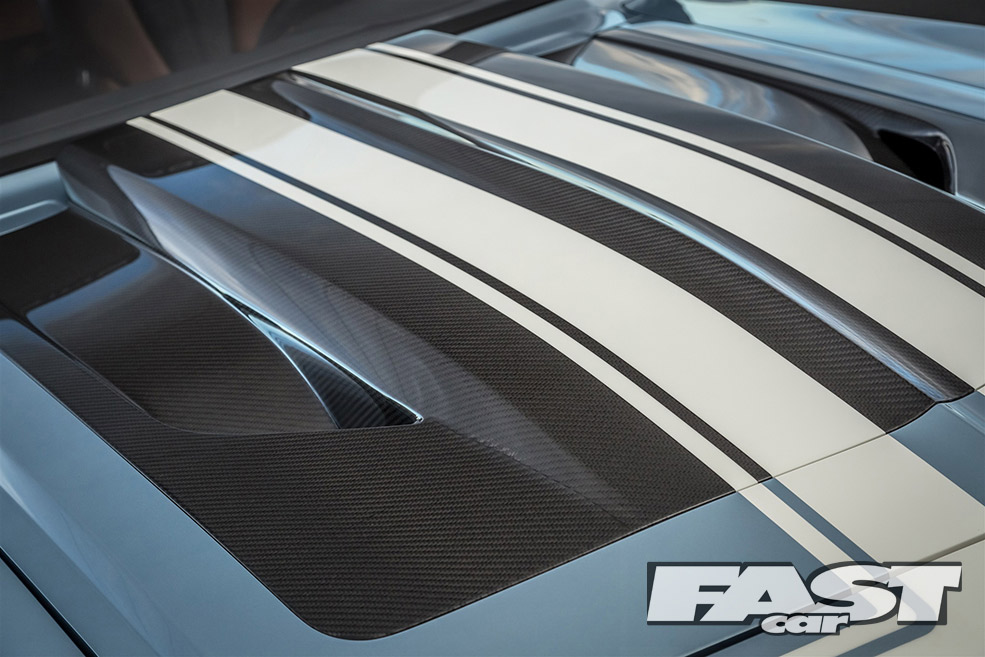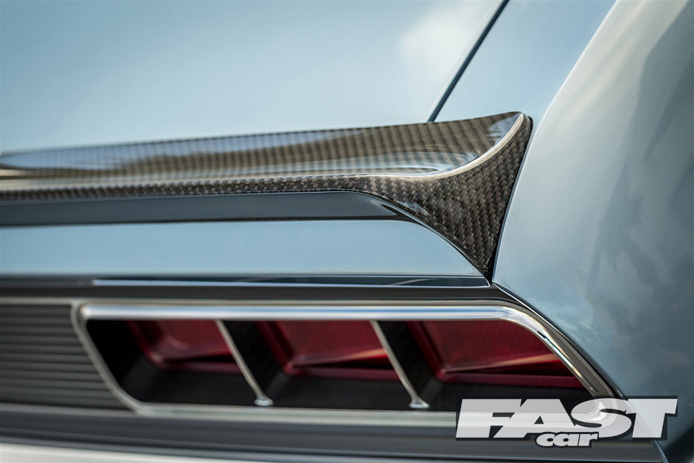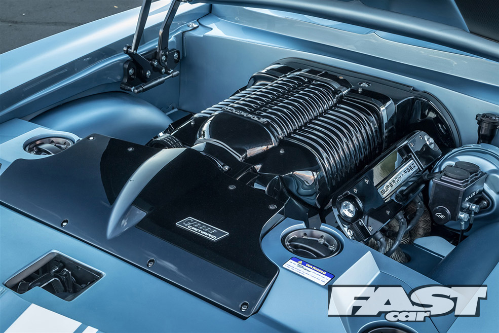 “G-Code’s” transformation began with the power plant – an LS3 motor from Chevrolet. Wegner Automotive beefed up the horsepower with a Whipper Supercharger and an increase in displacement to 416 cubic inches, bringing the output up to nearly 1,000hp. All those ponies are then sent through a Bowler-built Tremec six-speed transmission and a Centerforce Clutch.