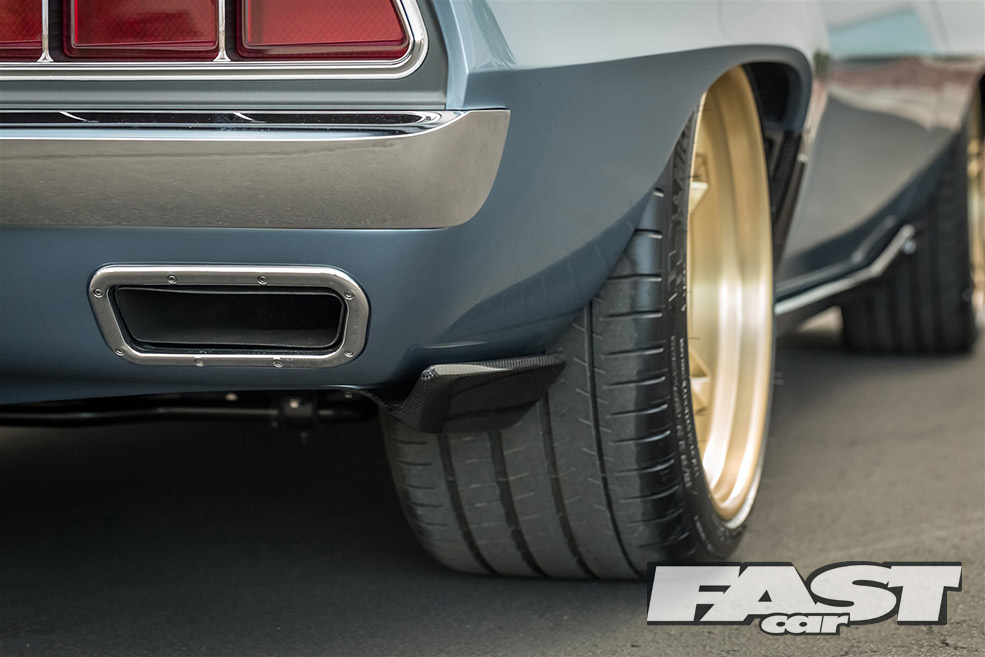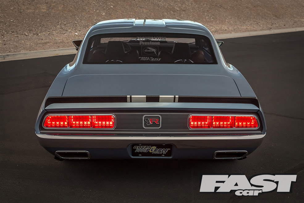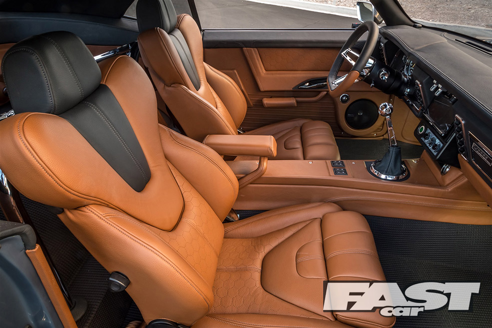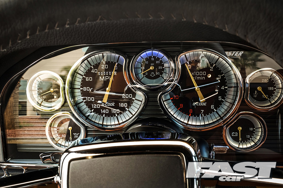 But “G-Code” isn’t all about straight-line speed. To make sure the car was equally as adept at going around a corner, Mike and Jim Ring used a Detroit Speed full suspension setup including a Hydro Form front clip and Quadra-Link rear with AFCO shocks on all four corners. To bring “G-Code” down from triple-digit speeds, massive Baer Brakes six-pot calipers were installed at all four corners with 15-inch rotors in the front and 14-inch rotors in the rear.