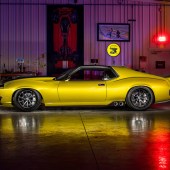 Key interior features include a Kicker sound system, Classic Instruments gauges, a Vintage Air Gen IV Magnum Evap Kit and custom seats by Upholstery Unlimited. “Defiant!” rolls on a set of HRE Performance Wheels sized at 20×11 in the front and 20×13 in the rear, all wrapped in Michelin tires sized 285/30/20 up front and 335/30/20 out back. With more than 1,000hp on tap, the Javelin requires massive stopping power, so a set of six-piston caliber Baer brakes are installed to bring the car to a stop.