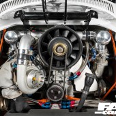 The boost itself comes courtesy of a modern (and very, very large) T04E-based unit. This successfully supplies the Beetle with a simply ridiculous amount of power to the rear wheels, and needed the support of a heavily re-worked air and fuelling system. In all there’s 550bhp pumping out of this thing, pretty much unheard of for such a small-capacity air-cooled lump!