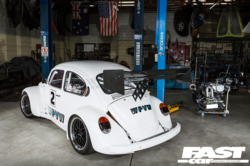 Legendary VW tuner, Richard Holzl of the iconic Sydney-based V-Force garage, has experienced this first hand after commencing an incredibly ambitious Beetle project back in the early ‘90s. The concept was simple enough: build a VW-bodied (and powered) racer to take on the local circuits which were dominated by much larger V8 machines at the time.
