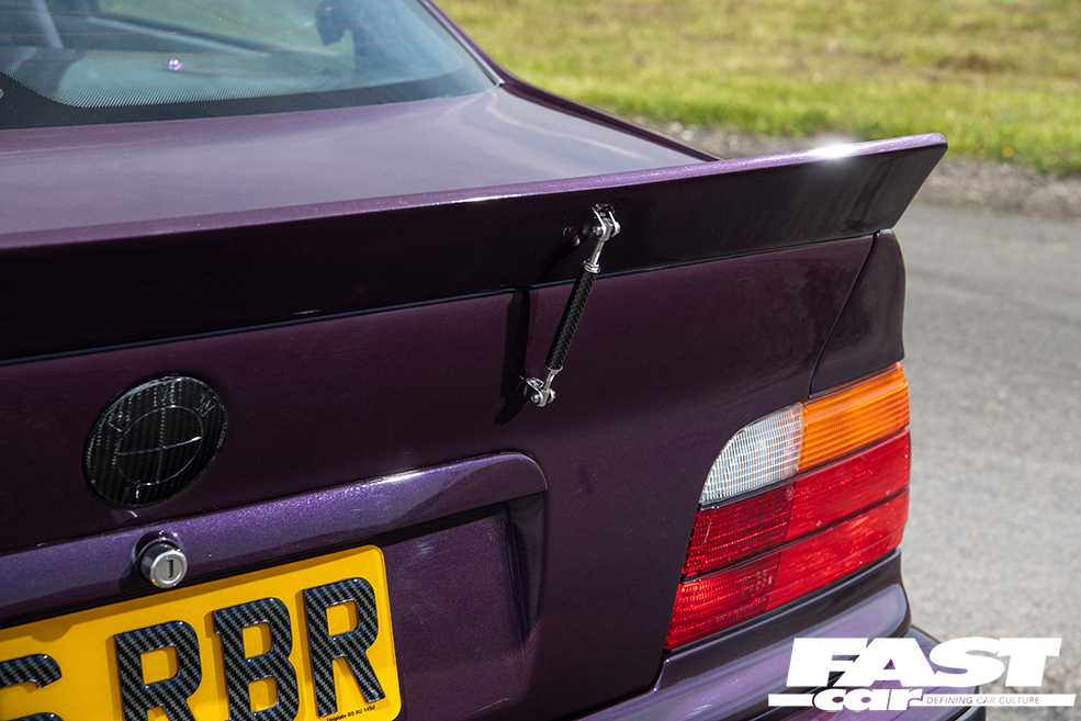 Lift the bonnet and you’ll find an S54, the 3.2-litre straight-six from an E46 M3, and that spicy choice was actually the catalyst for the entire build. “I bought the S54 first,” Al explains. “The plan was to just stick it in my drift car and have a decent amount of power, but instead of taking that car off the track to fit the engine, I thought I would build another one! So I started looking out for a decent example of an E36.” This was back in 2016, and after a little bit of hunting he managed to track down a straight and solid 323i – totally bone-stock, and only £1,000. Inevitably the first thing Al did with this tidy commuter-spec coupe was to tear it right down to a bare shell and start to make it more appropriate for extravagant skids. And this all-or-nothing approach makes a lot of sense when you consider the broader aspect of his lifestyle and working patterns. “I spend up to eight months of the year at sea, working on boats surveying oil pipelines and the like – all away from the family,” he explains. So it makes sense that in the time when he is at home (and when family commitments allow), Al goes all-in like a Tasmanian devil. “The last car I heavily modified was the GT-R,” he continues. “It had all carbon bodywork, and was the first in the UK to be on air as well; it had everything done – Litchfield Stage 4, full interior retrim, lots of custom one-off carbon pieces… it’s the one car I wish I’d never sold.”
