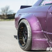 The rear ducktail spoiler is also intended for an S13, though this time the PS13 coupe version, and it’s all held on with countersunk rivnuts. In fact the rear GT-R arches are riveted on to the original rear quarters, then the Rocket Bunny arches on top of that!