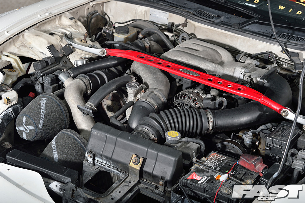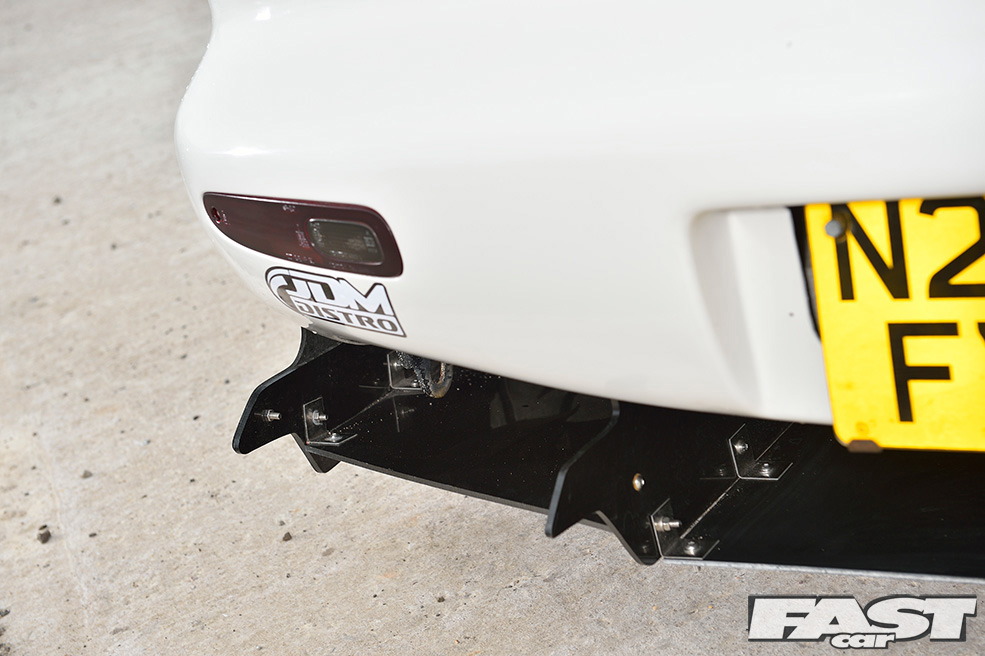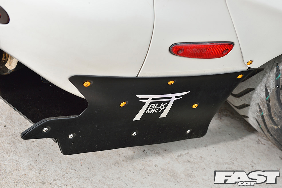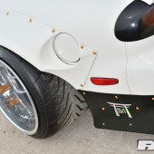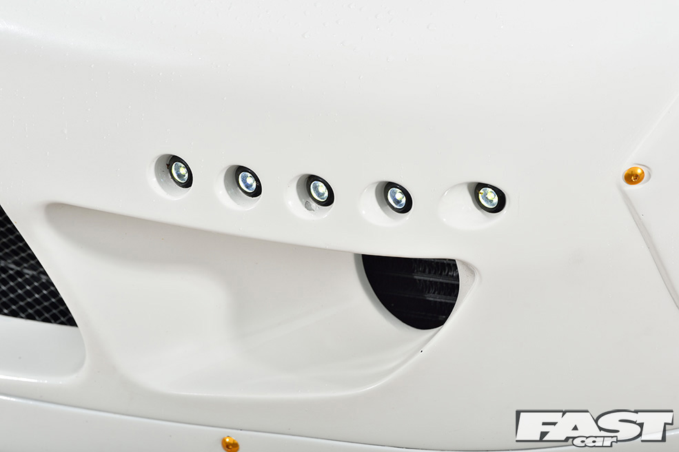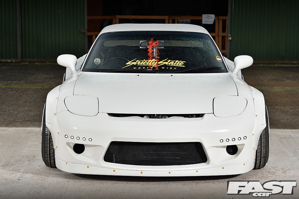 “Luckily, I’d been recommended going to Tom at Lukatar Power in Rushden through the drift community.” Sure enough, Tom performed a stellar job of getting the wide arches, front bumper, rear diffuser and ducktail spoiler riveted onto the car with military levels of perfection, before a lick of white paint was slapped onto the new-found curves, leaving Sean with a drop-dead gorgeous body on his hands.