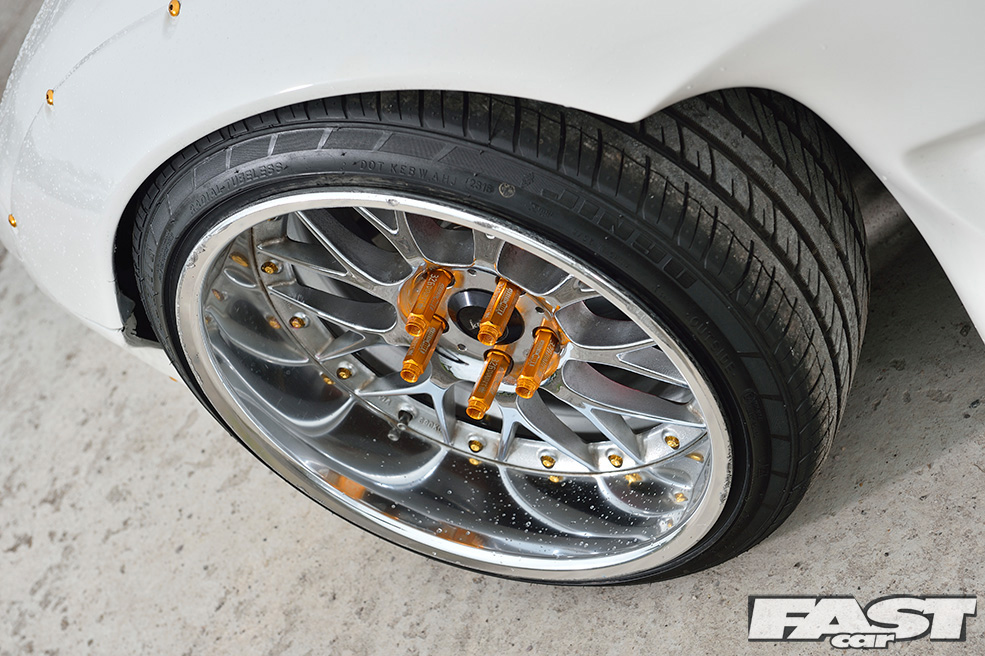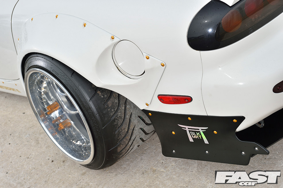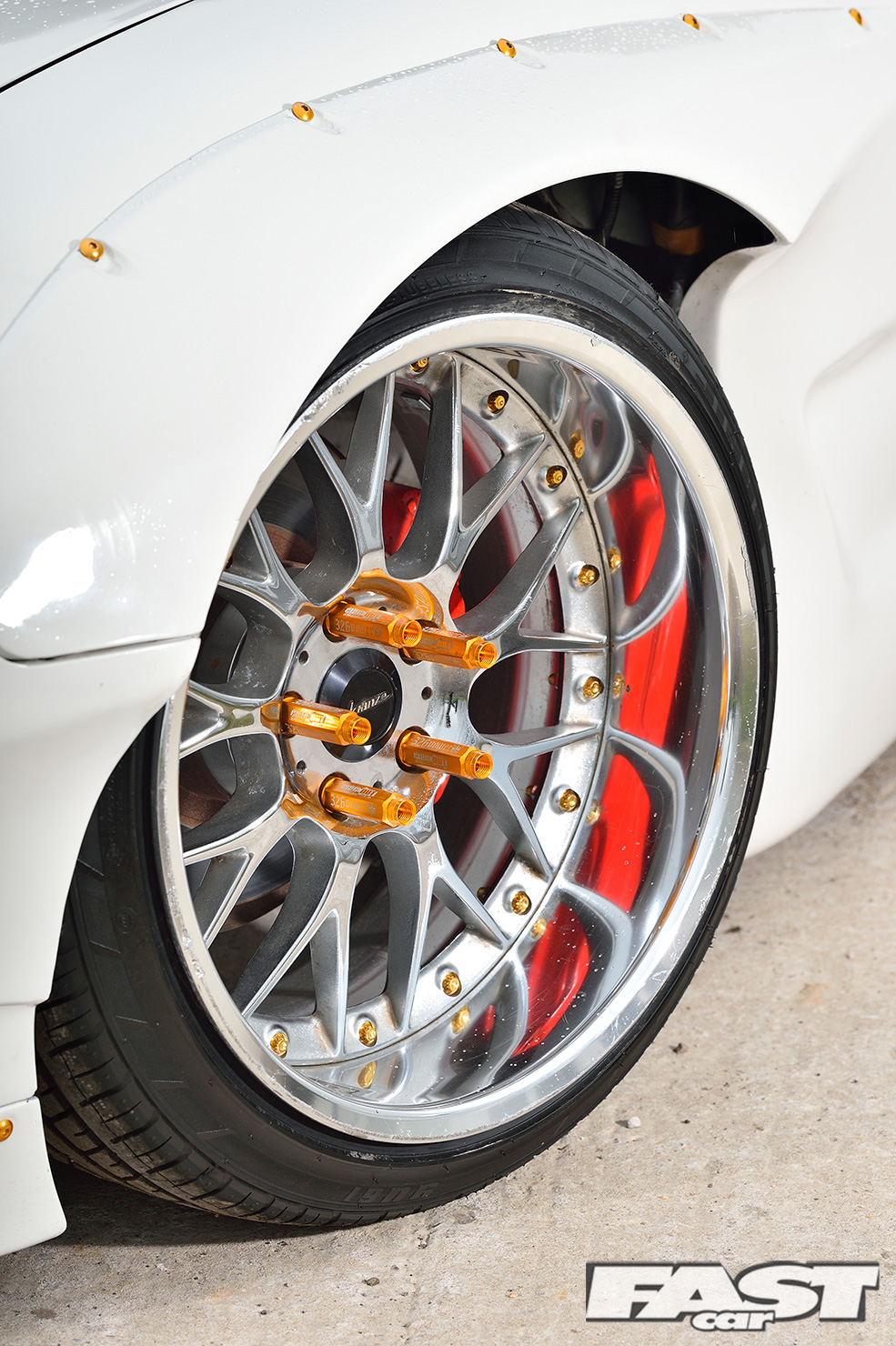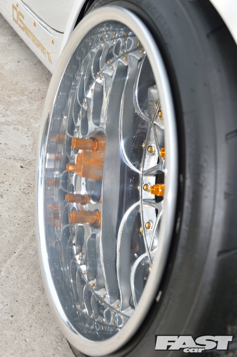 Problem was, they were nowhere near wide enough for his newly-built monster. “They were perfect for splitting and re-lipping, though” he explains. “I used my experience from my career as a metrologist to get the perfect wheel specs to the very last millimetre…” Using his highly sought-after skillset of being able to identify the exact sizes parts need to be to work, he soon came up with the winning formula for his RX…