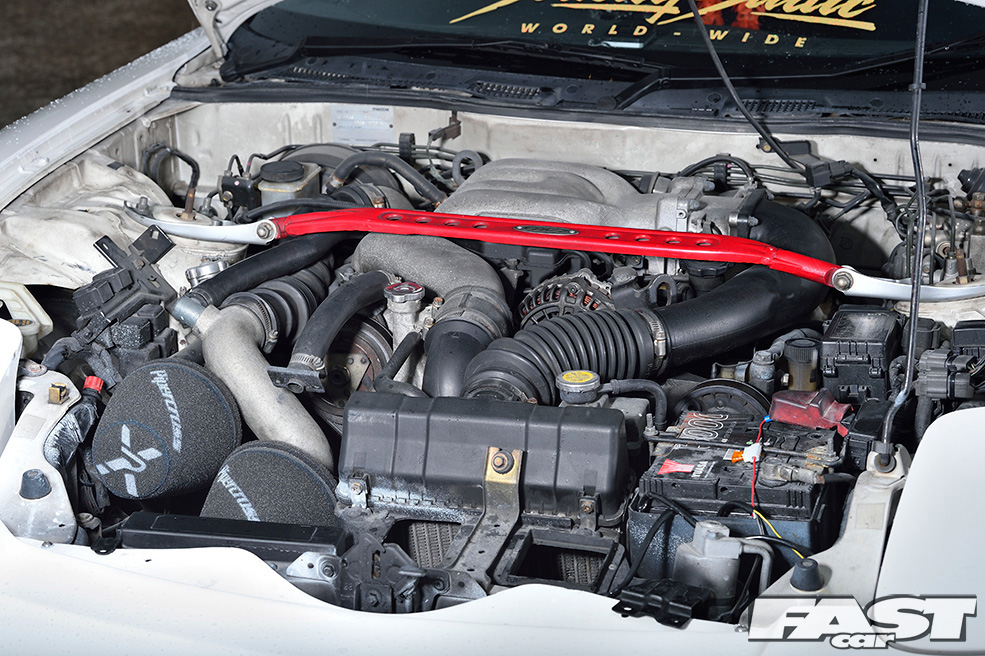 Fully rebuilt 13B twin-turbo rotary engine with large street port and mapping; Pipercross custom air filters; Blitz blow-off valve, Japspeed de-cat pipe, custom stainless steel cat-back exhaust system.