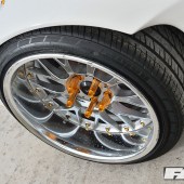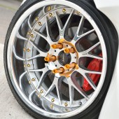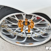 Eventually convincing himself these frankly insane specs were indeed right, the hunt began to find someone who had enough polished alloy on-hand to create these huge barrels. Eventually, VR Wheels in the States came up trumps, and the rims were put back together with suitably tasty gold M8 hardware to create some of the most incredible, physics-defying rimmage we’ve seen in a very long time – just look at them!