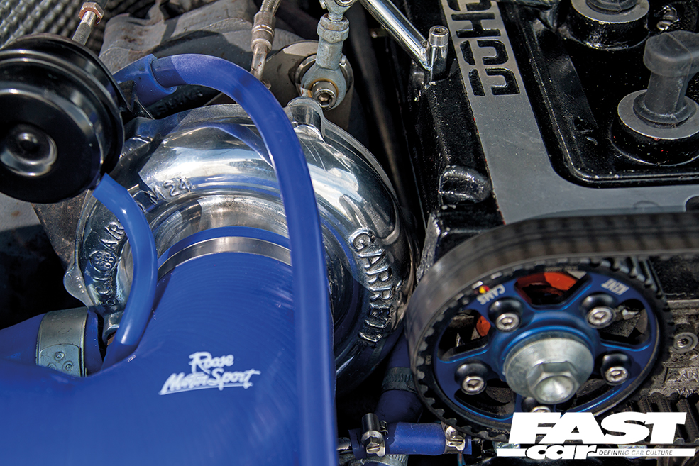 “I wanted an engine that could make 500bhp-plus,” says Ryan with a grin, so I sent it to Hart Power for a rebuild.” A full complement of uprated goodness was specified, including Cosworth pistons, BD14 inlet cam and a bespoke T4 turbo with GTXR billet shaft. Add to this an RS500 intercooler, 3.5in exhaust and plenty of other upgrades and this YB was set for big numbers. “It’s probably running around 400bhp right now,” estimates Ryan, but it should be good for 500bhp – the only issue is the gearbox; I’m currently on number three, “ he laughs. With a penchant for shredding cogs, the only way forward is to fit something much stronger like a dog ’box, but with concerns about the cost and loss in drivability, it’s not something Ryan plans to do right now. Besides, 400bhp is still capable of putting a big smile on his face.