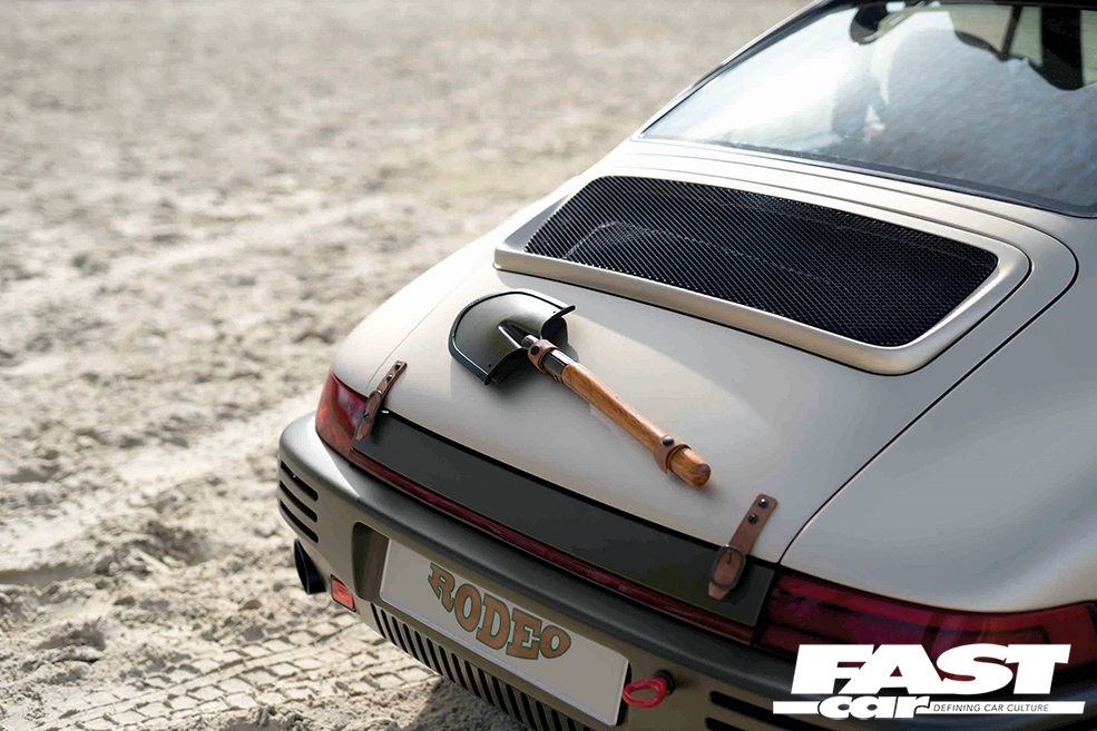 The car features the same carbon fibre monocoque chassis as the CTR Anniversary and the SCR, but with a four-wheel drive system to tackle off-road use, larger all-terrain tires, longer-travel suspension and more. The Rodeo Concept can accommodate either a normally aspirated or turbo-charged RUF flat-six engine.
