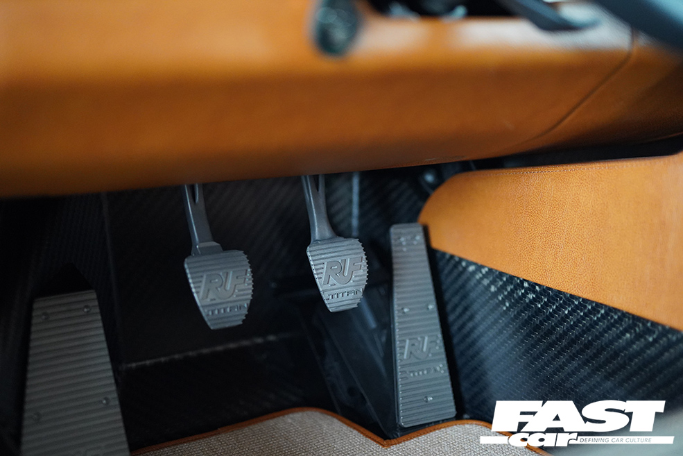 The engine is mated to a six-speed manual gearbox which gives the car the optimal mechanical feel. The car’s spoiler generates high downforce and keeps the RUF SCR stable at its top speed of 320kmh (199 mph).
