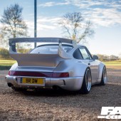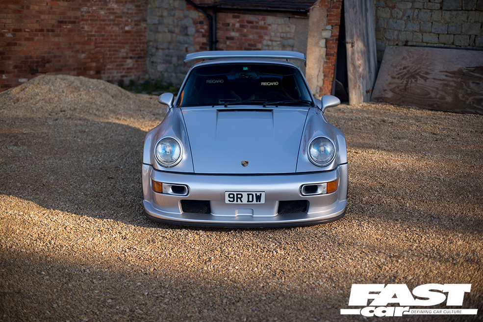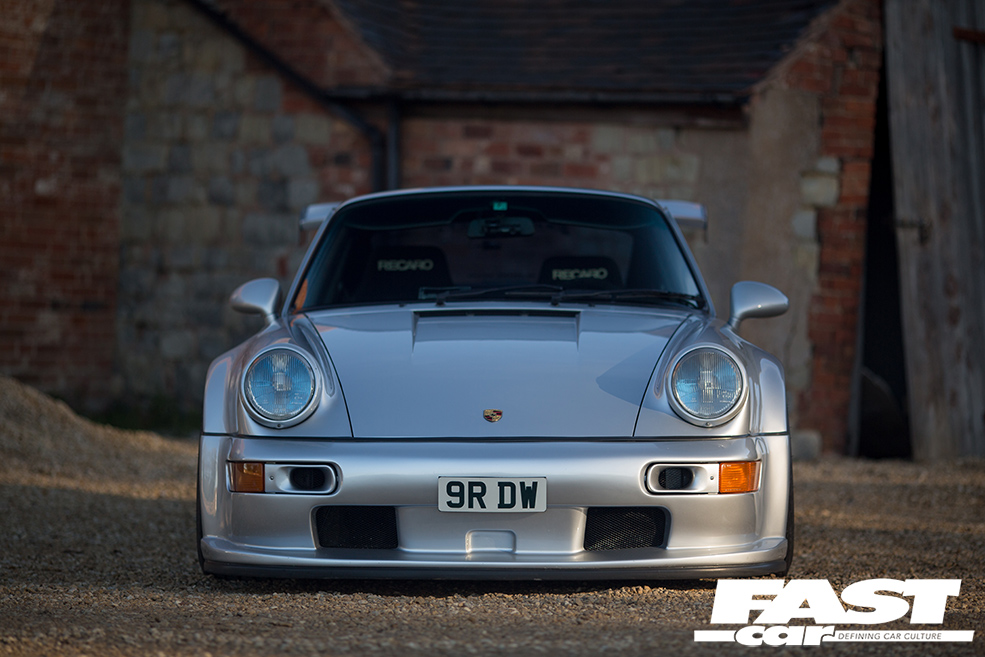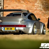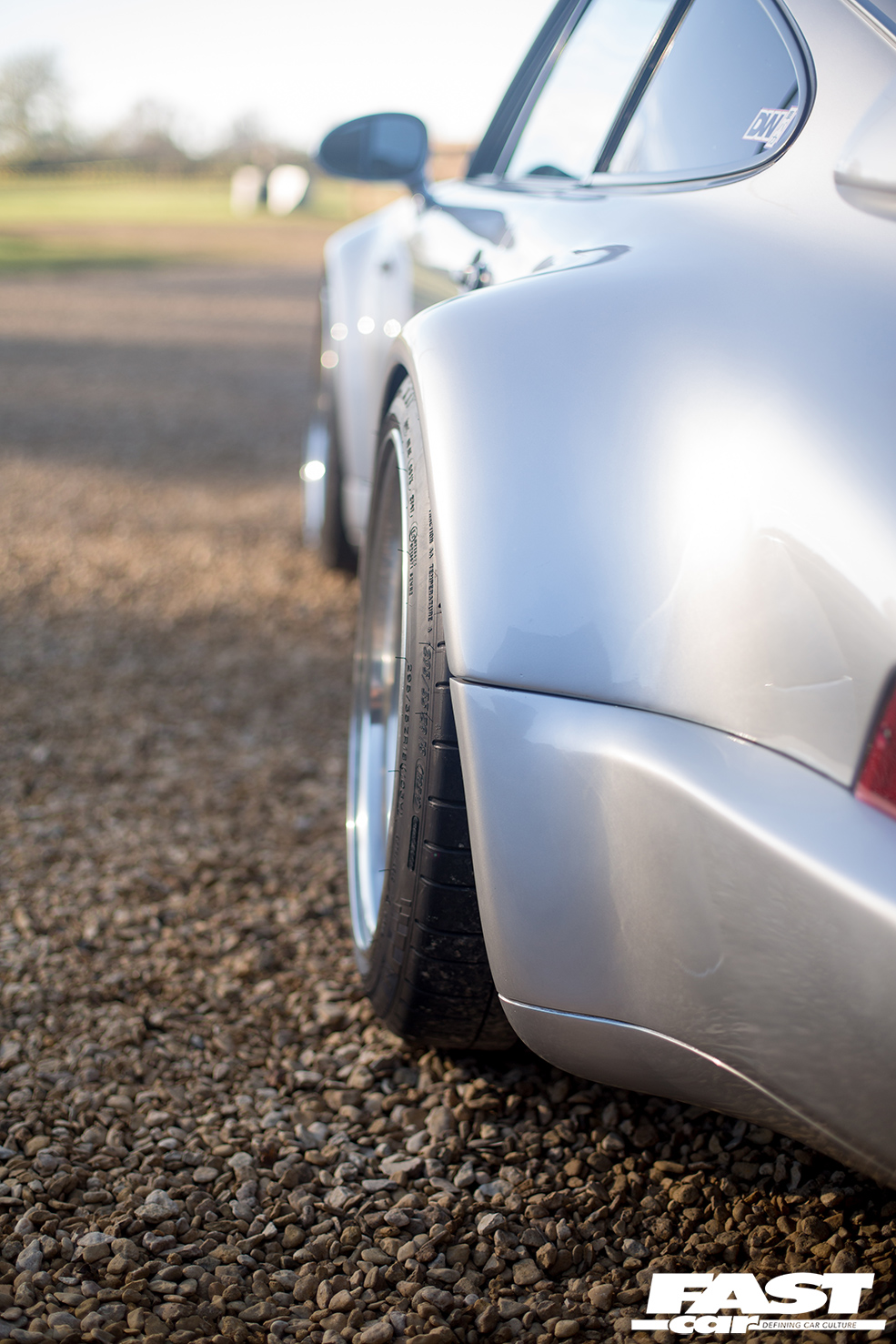 RWB ‘smooth fender’ wide body conversion and RWB bumpers, 993 GT2 Evo style bootlid and rear wing, clear side repeaters, front foglamp air ducts.
