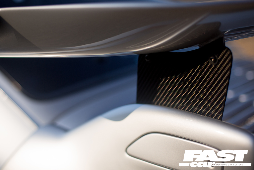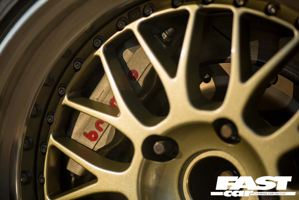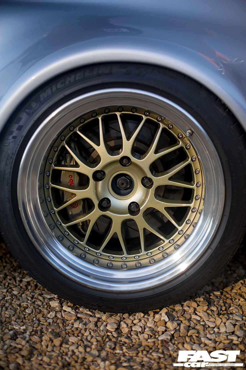 One big difference between this car and most RWB conversions you see, is that this car has smooth bodywork. RWB cars are known for having rivet-on, race-style arch extensions, much like many Porsche GT race cars over the decades, but this is a ‘smooth fender’ conversion, which while still incredibly wide and imposing, gives a slightly more factory look. Combined with the GT2 Evo-style rear wing, stunning WORK Brombacher wheels, and the millimetre perfect ride height and wheel fitment, makes for one of the nicest looking 964s we’ve ever seen.