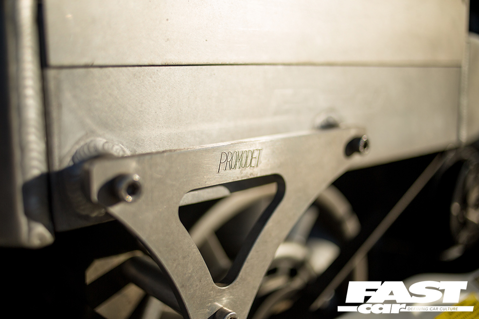 The biggest engine modifications however consist of the huge custom intercooler, stunning Promodet exhaust manifold, big HKS T04 turbocharger (significantly larger than the factory K27), and along with uprated fuel and ignition systems. With all of this controlled by the Motec ECU, the engine puts out around 550bhp while revving hard to the 7000rpm rev limiter.