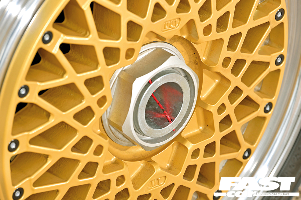 Although they’re wheels usually associated with track day cars, the polished lips and gold centres suit the car well and those in the know realise they’re a serious bit of kit, which is perfectly in keeping with the car’s look.