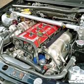YB 200 Ductile linered block, CP forged pistons, steel rods, Arrow steel crankshaft, ported head, uprated cams, adjustable pulleys, big wing sump, BorgWarner 91/80 EFR twin-scroll turbo, twin TiAL external wastegates, Nortech Performance twin-scroll tubular exhaust manifold and 3.5in exhaust system, Spec-R intercooler, rad and WRC style breather set up, Roose Motorsport silicone hoses, custom intake with K&N filter, Autronic SM4 ECU