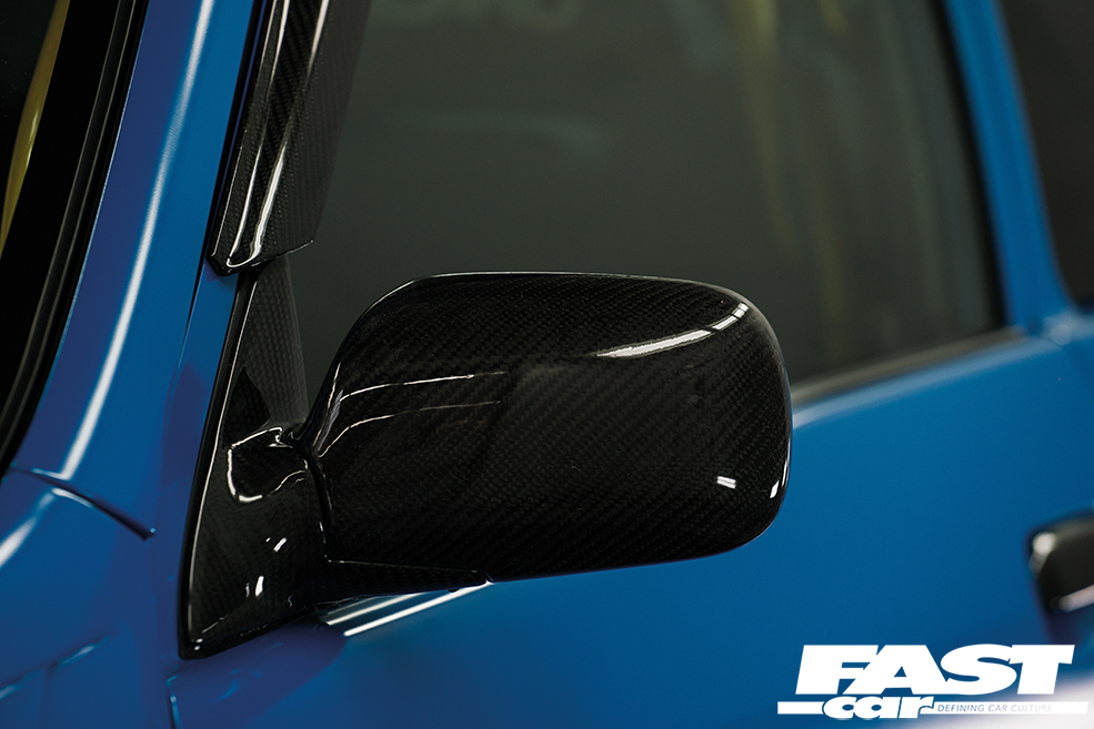 There’s no time for what-ifs here though, because Erwin’s startling creation has been specifically crafted to be one-of-one, something the world has never seen before. With this in mind, he’s paid particular attention to the aesthetics, honing and refining to craft a unique profile: “The carbon bonnet was completely broken down to the resin layer and then restored,” he explains. “With the Varis front bumper, the fog lamp holes were drilled out and carbon plates popped over the holes with rivets, and the Livesport wings were restored too. The carbon splitter I made in conjunction with Double M Carbon, and the rear wing was carefully widened with parts from a scrap Starlet. The JAM spoiler? That was in two pieces so it was also repaired and restored, and there’s a carbon ducktail which has been finished in the body colour.” This evidently isn’t simply a quest for uniqueness, but one of ingenuity, of finding rare and unusual aftermarket parts that are long- deleted from the catalogues, and making them better than ever. This isn’t just a car that hasn’t been built before, but one that almost certainly could never be built again.